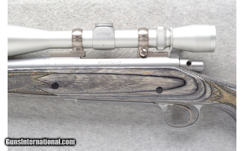 Description: This Remington Model 700 is a right hand bolt action rifle in .300 Rem. Ultra Mag. Cal. It has a 26 inch satin stainless steel barrel and a checkered grip hardwood laminate pistol grip stock with a raised cheekpiece. Has a jeweled bolt and knurled bolt handle. Is outfitted with a Leupold VARI-X IIc 3-9x40mm Scope. No iron sights. In overall excellent condition it comes as is. SOLD Caliber Info: .300 Rem. Ultra Mag. Chambers: Hinged floorplate. Metal Condition: Excellent. Wood Condition: Excellent. Bore Condition: Excellent. Barrels: 26 inch satin stainless steel. Triggers: Grooved. Stock: Checkered grip hardwood laminate pistol grip with a raised cheekpiece. Stock Dimensions: LOP 13 1/4 inches. Fore End: Checkered grip hardwood laminate. Butt Pad: Remington black rubber pad. Weight: 8 lbs. 13 oz. with Scope mounted. Sights: Leupold VARI-X IIc 3-9x40mm Scope. No iron sights. Item Location: Richfield, WI |