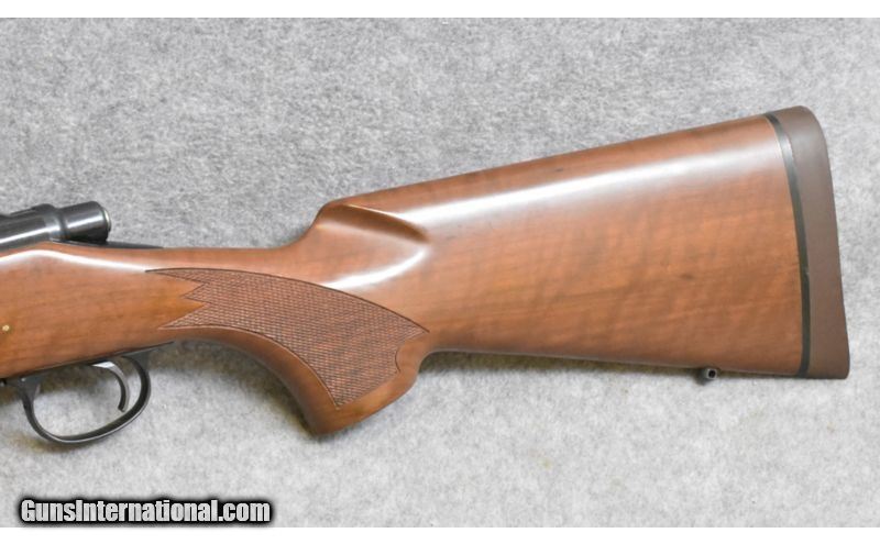 Description: Classic model with blued receiver and barrel. SOLD Caliber Info: .300 Wby. Mag. Metal Condition: very good to excellent condition, a few scuff/scratch marks on the magazie floor plate and trigger guard Wood Condition: very good to excellent condition, a few scattered nicks and dings, some light handling marks on the left side of the stock Bore Condition: bright and sharp Barrels: 24 inch Triggers: single, smooth trigger Stock: checkered walnut pistol grip Stock Dimensions: 13 1/2 inch LOP Fore End: checkered walnut Butt Pad: checkered Remington brand rubber pad Weight: 7 lbs 14 oz Sights: none, drilled and tapped receiver Extras: none, no box or case Item Location: Kansas City, KS |