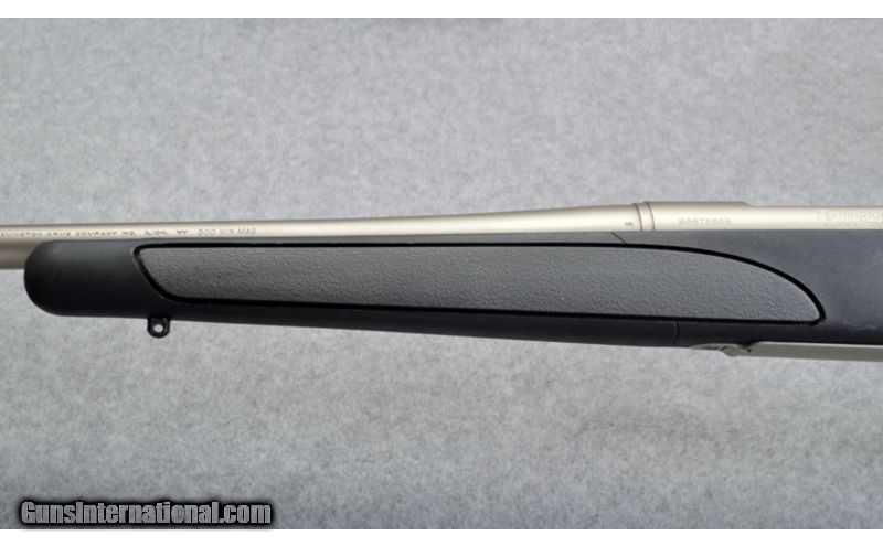 Description: SOLD Caliber Info: .300 Winchester magnum Metal Condition: Excellent with a few handling marks Wood Condition: Composite has a few scuffs and scratches Bore Condition: Excellent, bright and sharp Barrels: 26 Inches, stainless steel Stock: Pistol grip composite with rubberized texturing Stock Dimensions: LOP 13 ¼ Inches Fore End: Tapered composite with rubberized texturing Butt Pad: Rubber butt pad Weight: 6 Lbs. 5 Oz. Sights: Tapped for scope Item Location: Farmington, UT |