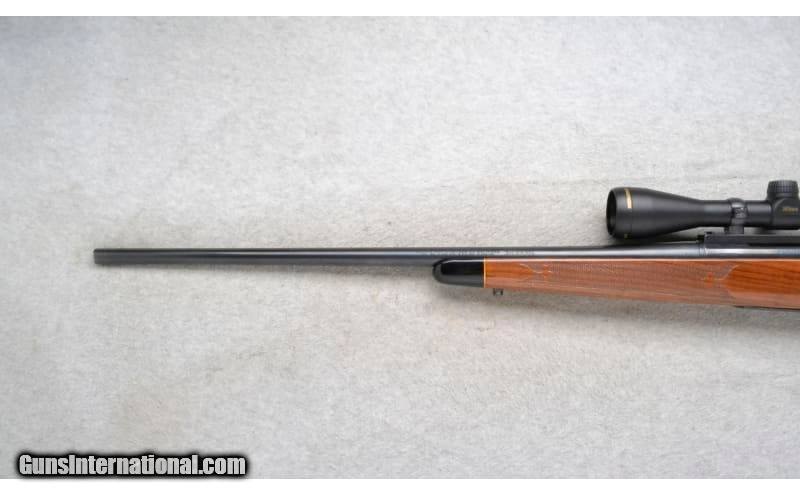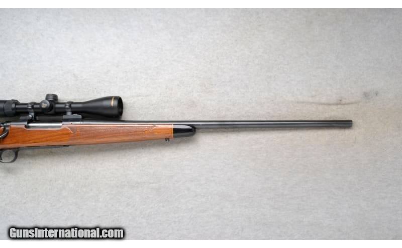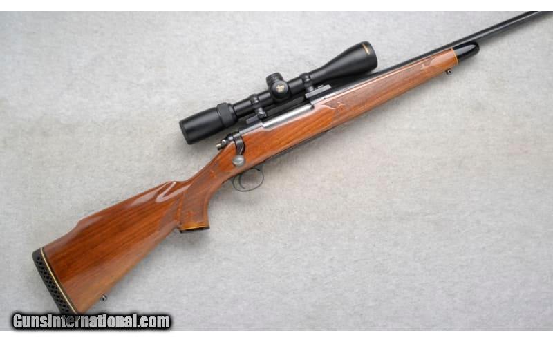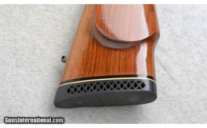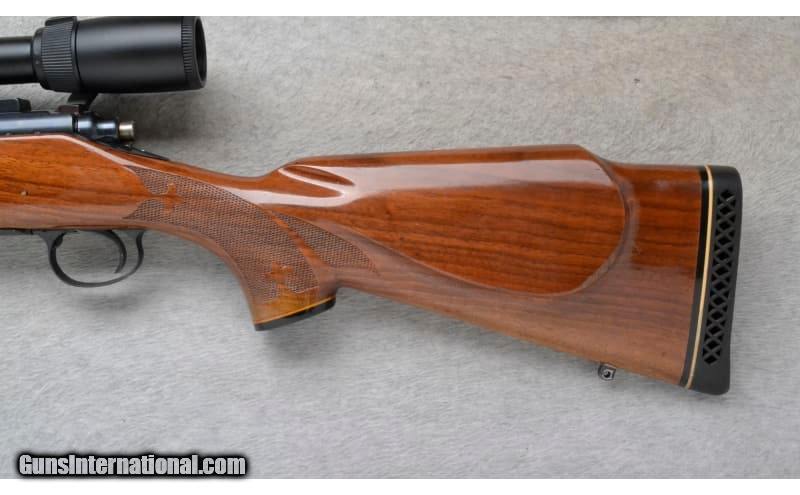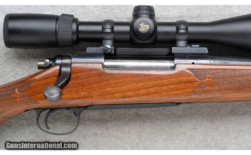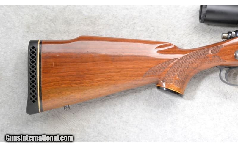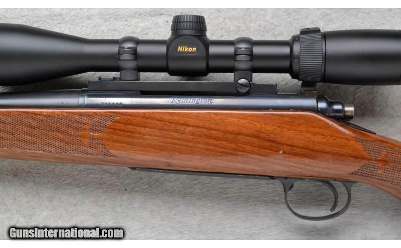 Description: This Remington Model 700 is a right hand bolt action rifle in .300 Win. Mag. It has a 24 inch barrel. It is drilled and tapped for iron sights. It is outfitted with a Nikon Buckmasters 3-9x40 Scope. The butt stock is a checkered grip walnut pistol grip with a raised cheekpiece and black cap. The forearm is a checkered grip walnut with a black cap. It has a grooved trigger and checkered bolt handle. .300 Winchester Magnum SOLD Chambers: Internal Magazine with a hinged floorplate. Metal Condition: Good. Shows a little use. Wood Condition: Good. Light handling marks. Cheekpiece bottom has some wood worn off. Bore Condition: Excellent. Barrels: 24 inch barrel. Stock Dimensions: LOP 13 1/4 inches. Fore End: Checkered grip walnut with a black tip. Butt Pad: Remington black rubber recoil pad. Weight: 8 lb. 14 oz. Sights: Drilled and tapped for iron sights. Nikon Buckmasters 3-9x40 Scope. Item Location: Richfield, WI |