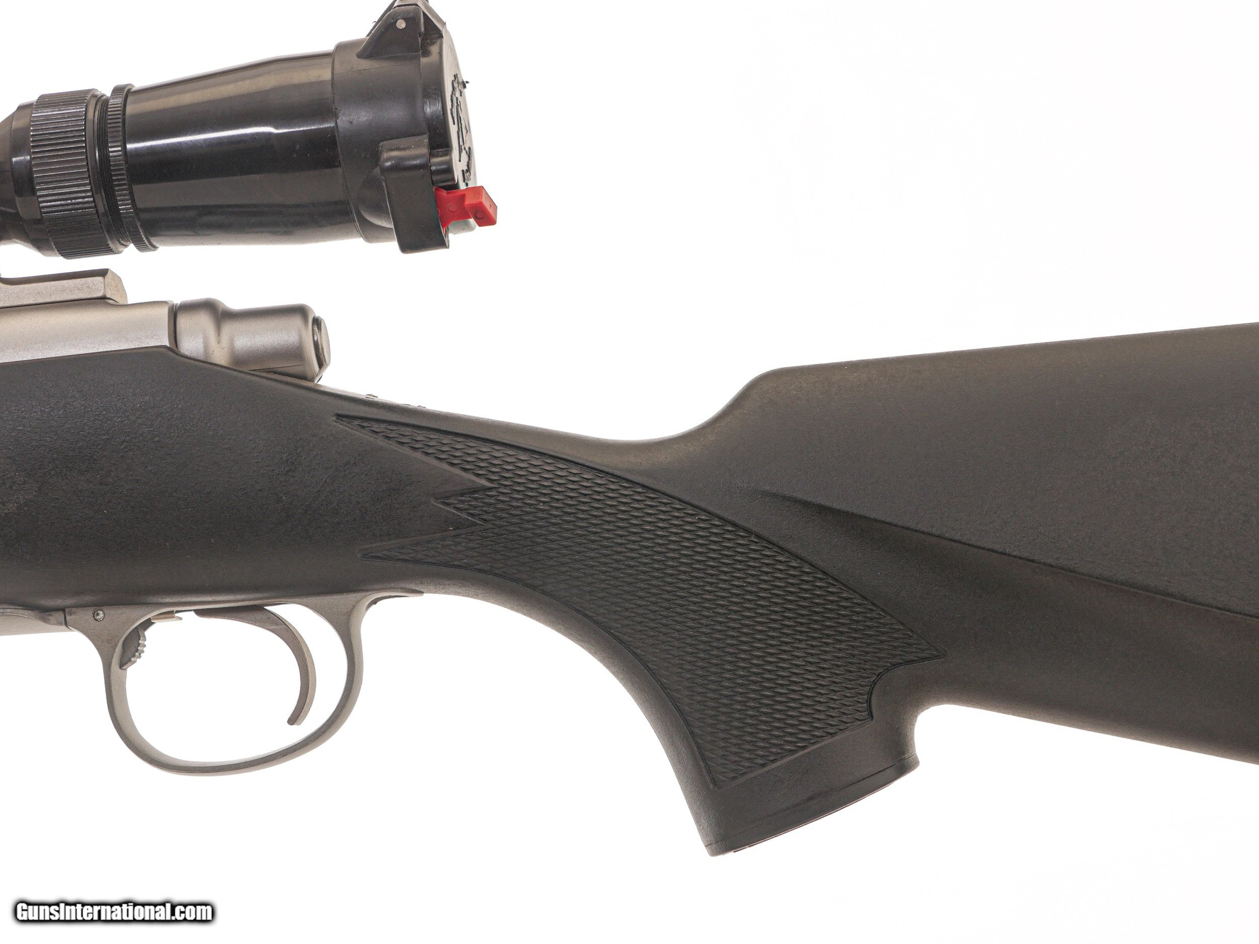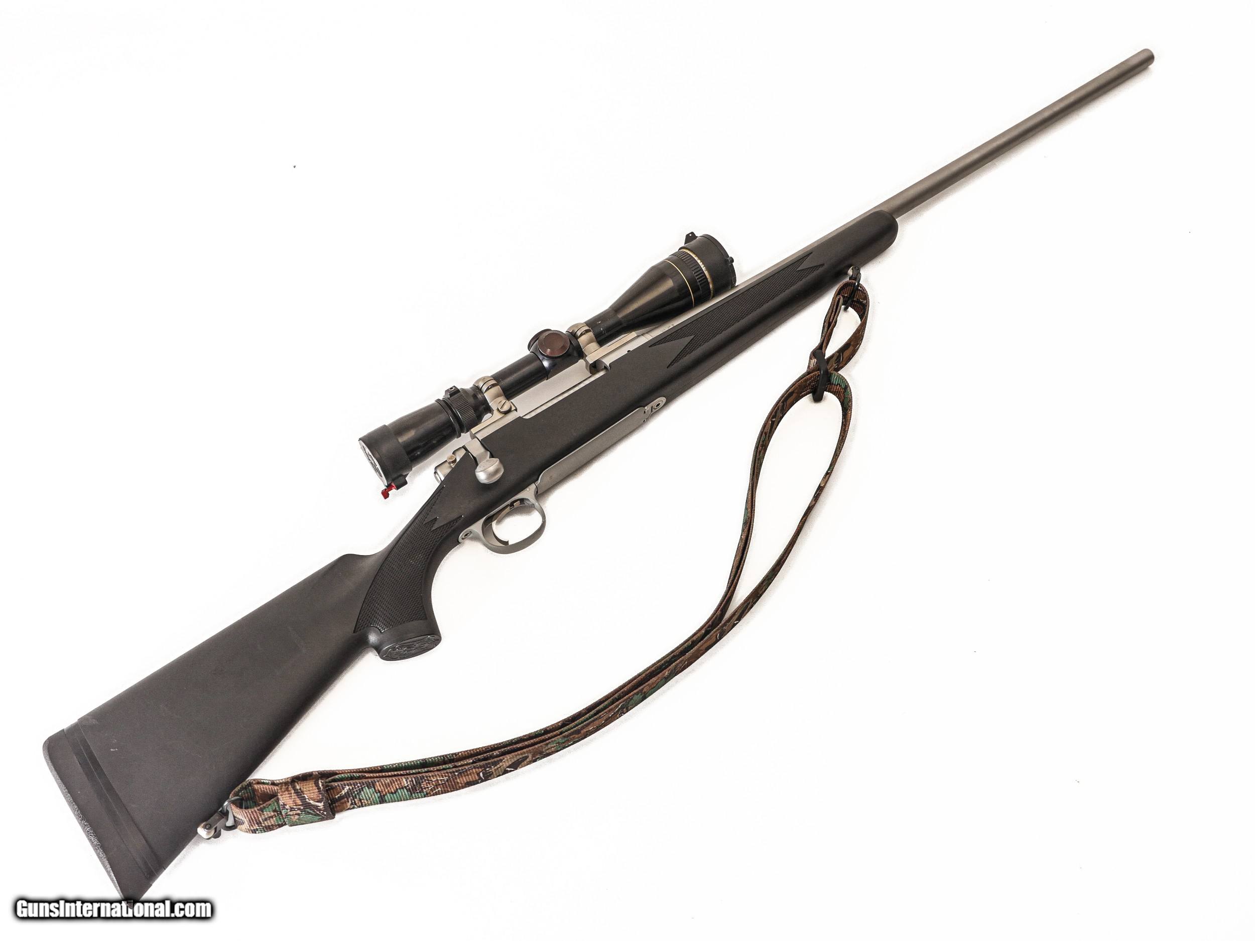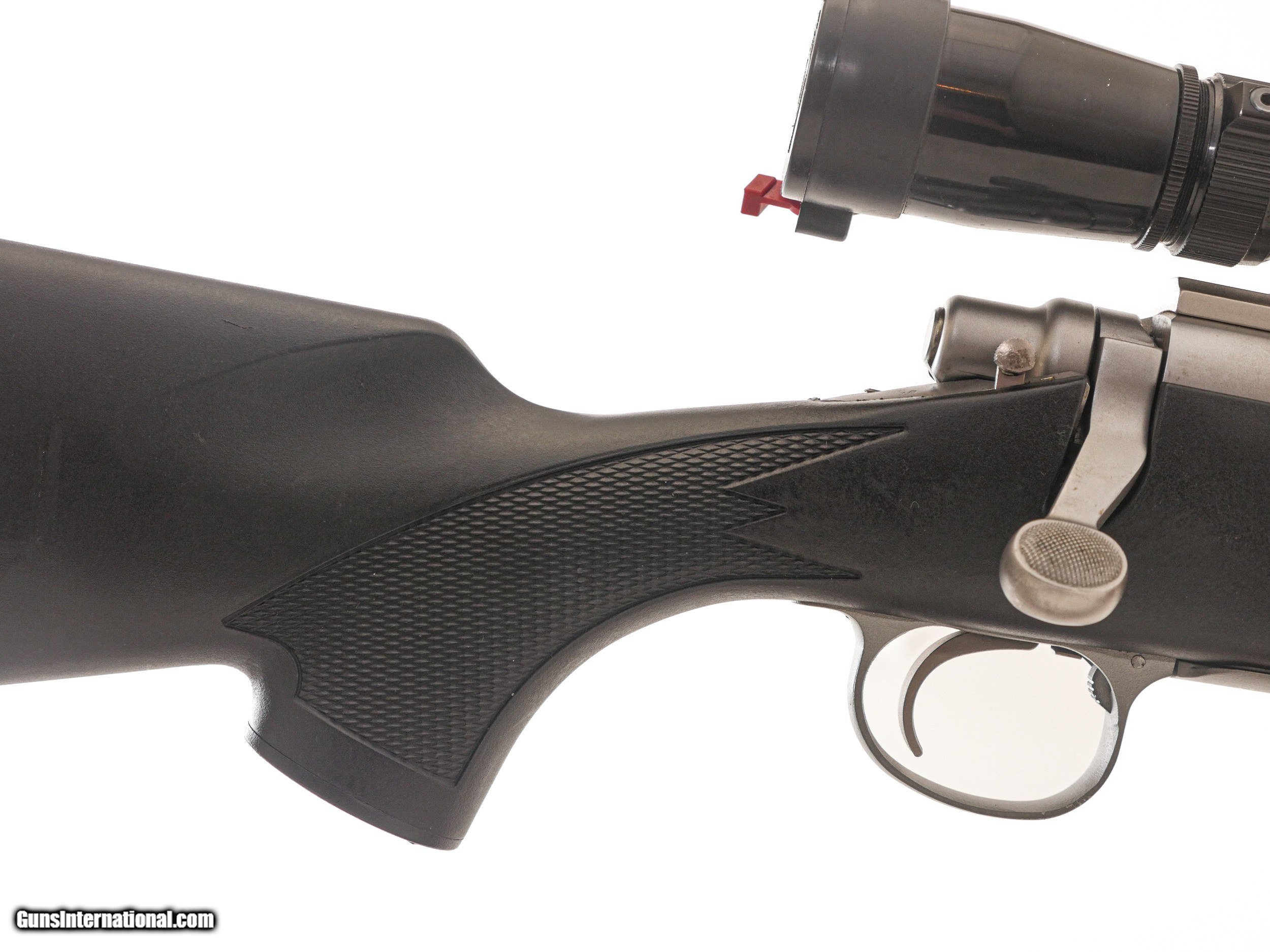 Description: Remington - 700, 300 Win Mag. 24" Barrel. Synthetic pistol grip stock with integral cheekpiece, Decelerator pad, satin nickel finish, jeweled bolt, includes Leupold Vari-X III 3.5-10 scope, gun appears new and unused, available for immediate delivery. S & H - $50.00 Inv: 50083 8 lbs. 12 oz. 13 ¾” LOP $599.00 SOLD |