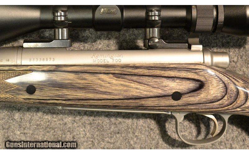 Description: Arguably the most popular and recognizable bolt action ever made, the Remington 700 BDL is strong, smooth, and accurate. Paired with the hard hitting .300 Win Mag, Nikon glass, and a gorgeous grayscale laminate stock, this hunting package will make a great addition to any hunters inventory. .300 Winchester Magnum SOLD Metal Condition: Excellent/Very Good; light handling marks throughout; concentrated on trigger guard and floorplate Wood Condition: Excellent Bore Condition: Excellent Barrels: 24 Stock Dimensions: 13.5" LOP Fore End: Textured Wood Butt Pad: Rubber by Remington Weight: 9 LBS Sights: Nikon Buckmaster 3-9x50mm Item Location: Thornton, CO |