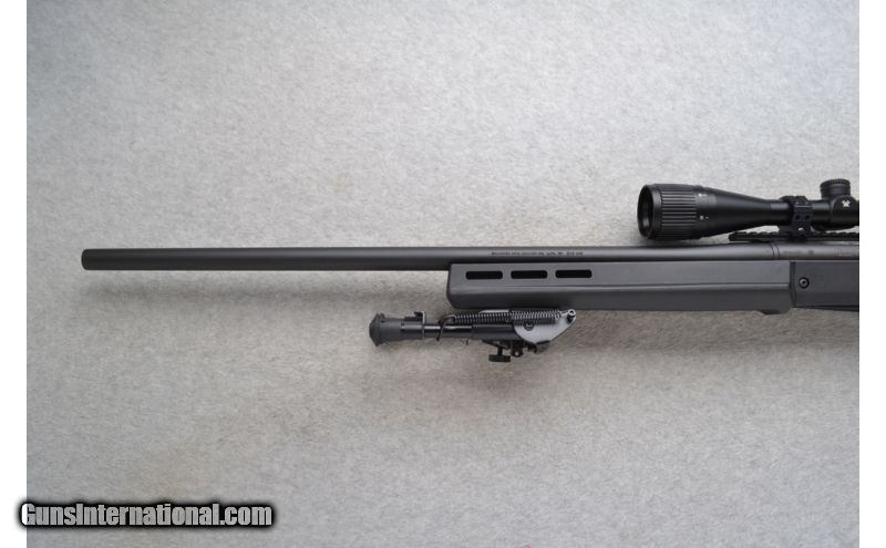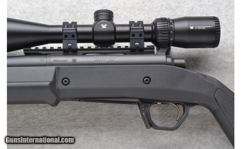 Description: This Remington Model 700 is a right hand bolt action rifle in .308 Win. Cal. It has a 26 inch barrel and a Magpul black polymer pistol grip stock. It is outfitted with a Vortex Crossfire II 4-12x40 Scope. No iron sights. It also has a bi-pod attached. In overall excellent condition it comes as is. No box. SOLD Caliber Info: .308 Win. Chambers: Detachable magazine. Metal Condition: Excellent. Bore Condition: Excellent. Barrels: 26 inch matte black. Stock: Magpul textured grip black polymer pistol grip. Stock Dimensions: LOP 14 1/2 inches. Fore End: Magpul side vented black polymer with bi-pod. Butt Pad: Magpul ribbed black rubber. Weight: 11 lbs. 11 oz. with scope mounted. Sights: Vortex Crossfire II 4-12x40 Scope. No iron sights. Item Location: Richfield, WI |