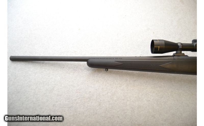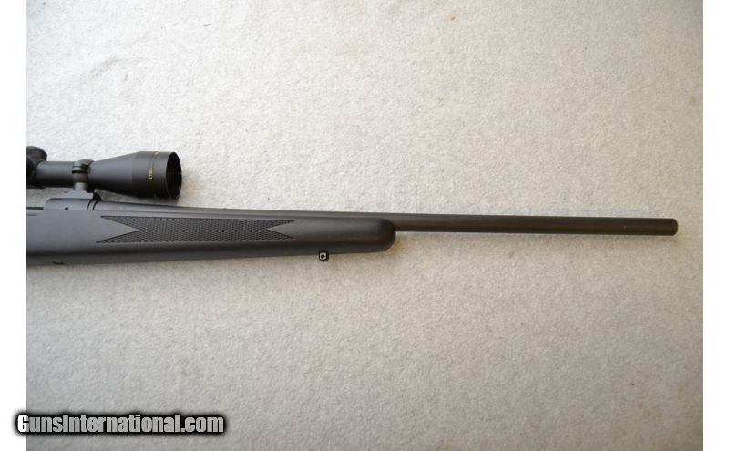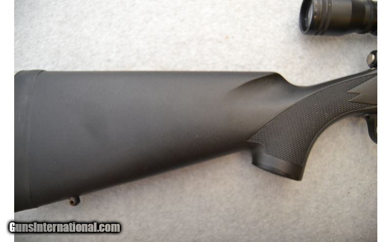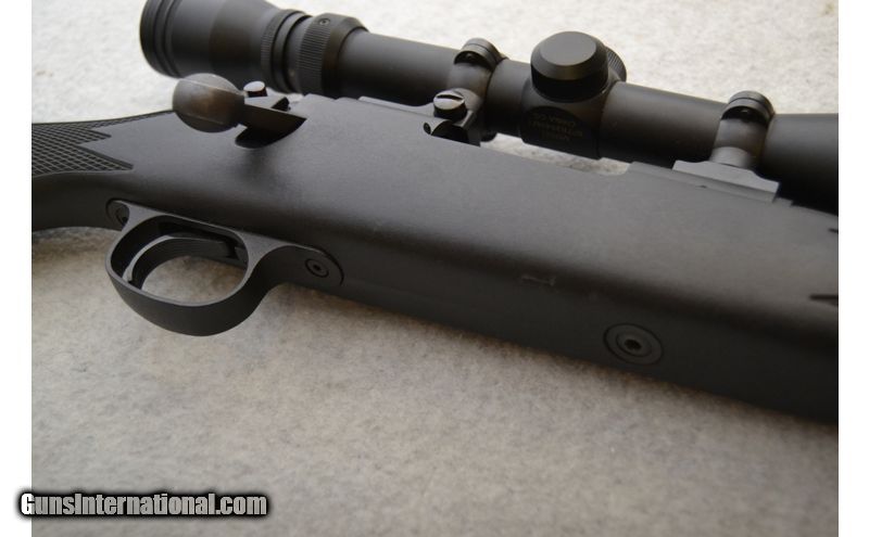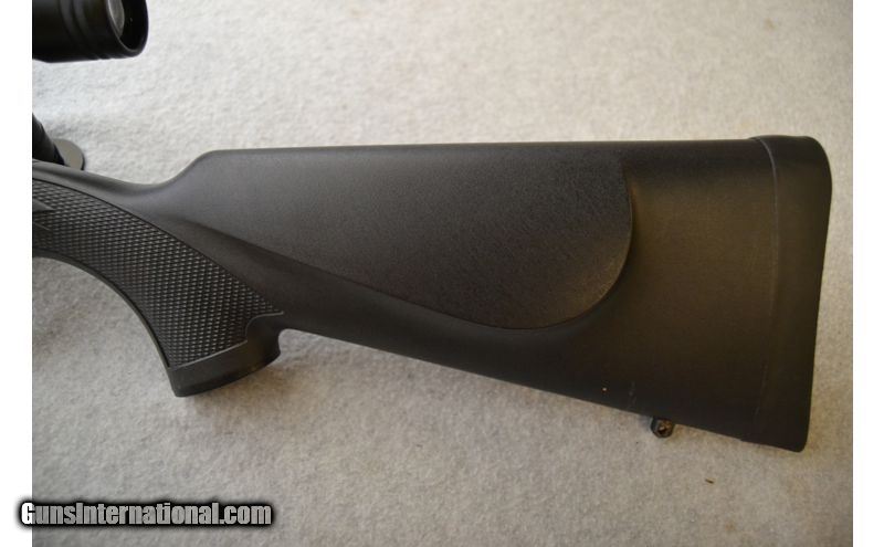 Description: Overall good condition. Metal has some handling/use marks and a small number of spots where the finish seems to have not protected the metal as well as it should have. Stock has handling marks as well. Bore is excellent with strong rifling and healthy shine. .308 Winchester SOLD Chambers: Bolt-action fed from an internal magazine. Metal Condition: Fair to good. Wood Condition: Stock is in good condition. Bore Condition: Excellent. Barrels: 22" Matte blued. Triggers: Wide matte blued metal with grooved surface. Stock Dimensions: 13¼" LOP Monte Carlo style with textured grip areas. Fore End: Diamond pattern textured side panels on matte black synthetic. Butt Pad: Black rubber pad. Weight: 8 lbs. Sights: No iron sights. Comes with a Simmons3-9x40mm scope. Item Location: Green Bay |