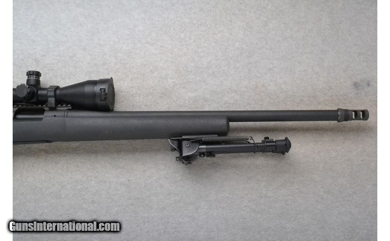 Description: This Remington Model 700 is a right hand bolt action rifle in .308 Win. Cal. It as a 22 inch barrel plus a muzzle device. It is outfitted with a Leupold Mark 4 Scope. No iron sights. The butt stock is a textured grip black polymer pistol grip. The forearm is a textured grip black polymer with a folding adjustable Bi-Pod. .308 Winchester SOLD Chambers: Internal magazine with a hinged floorplate. Metal Condition: Excellent. Bore Condition: Excellent. Barrels: 22 inch barrel plus a muzzle device. Stock Dimensions: Remington black rubber pad. Fore End: Textured black polymer grip with a folding adjustable Bi-Pod. Butt Pad: Remington black rubber pad. Weight: 11 lb. 14 oz. Sights: Leupold Mark 4 4.5-14x50mm LR/T Scope. No iron sights. Item Location: Richfield, WI |