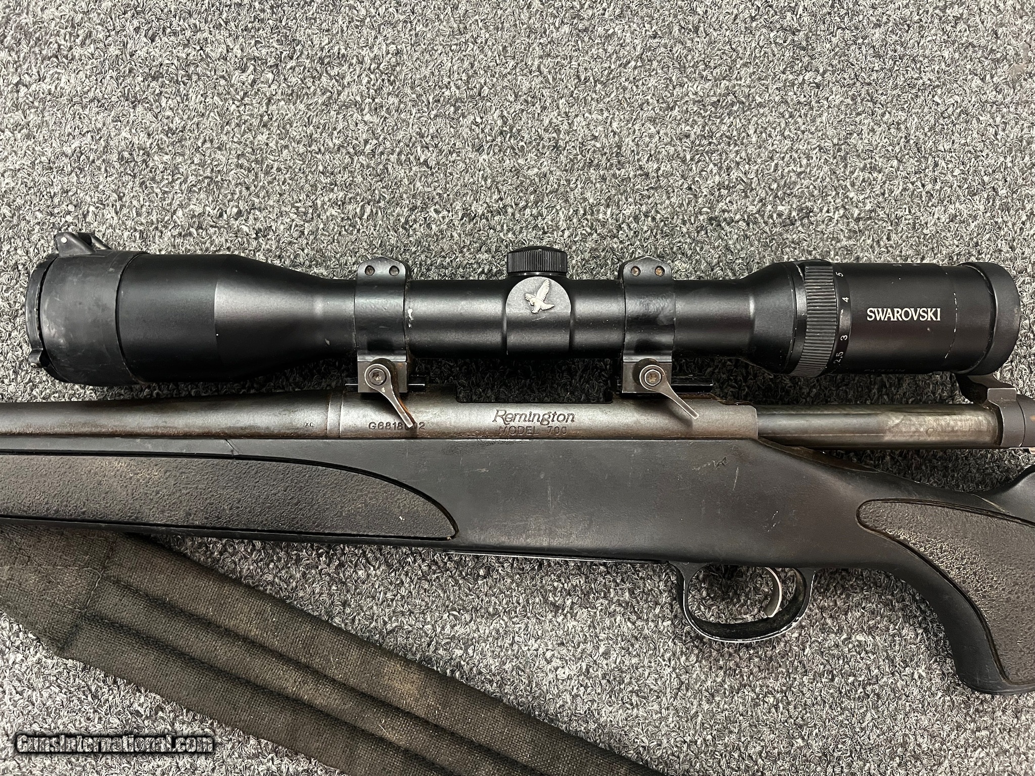 Description: Guns Listing ID: 935840 Remington’s Model 700 offers all the reliability and performance of their famous 700 line at an affordable price for average shooting enthusiast. The rifle features a hinged magazine for quick and easy unloading, lightweight synthetic stock, and Remington’s X-Mark Pro adjustable trigger. This gun comes with a sling and a SWAROVSKI 2 5-10x42 scope. Gun is in very good condition, with minor wear and tear. SOLD Manufacturer: REMINGTON Model: 700 Caliber Info: .308 WIN Condition: Used - Non-Certified Barrels: 25 BARREL Finish: BLACK |