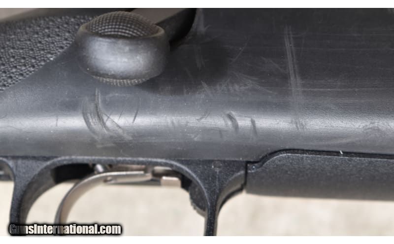 Description: This short rifle features a heavy contour 20-inch barrel, internal box magazine with hinged floor plate, and it is scope-ready. There is a bit of rack rash, but the barrel looks nearly new. .308 Winchester SOLD Chambers: 4 rounds Metal Condition: Very good to excellent. Wood Condition: Very good. There is some 'rack rash' above the trigger. Bore Condition: Shiny and bright with good rifling. Barrels: 20-inch heavy (0.85 dia) contour. Triggers: Factor trigger. Stock Dimensions: 13-3/4 inches Fore End: Black synthetic. Butt Pad: Soft rubber. Weight: 8 lb - 4 oz Sights: Drilled and tapped for scope. Item Location: Rogers |
