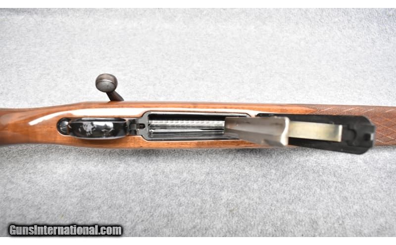 Description: .338 Winchester Magnum SOLD Chambers: .338 Winchester Magnum Metal Condition: Blued metal in good condtion some wear on it Wood Condition: A satin finish walnut stock with cut checkering on its trim forend and pistol grip in good condition Bore Condition: Clean Barrels: 24" Barrel Triggers: MOA Trigger System Butt Pad: Pachmayr Decelerator recoil pad Weight: 8.5 lbs Sights: Rings and mounts on rear open sight on front Item Location: Billings, MT |