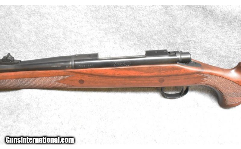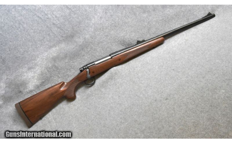 Description: Jeweled bolt SOLD Caliber Info: .416 Rem Mag Metal Condition: Excellent finish Wood Condition: Good with a few scratches around butt pad Bore Condition: Very good with bright lands Barrels: 24 inch round Triggers: Single grooved trigger Stock: Semi-pistol grip checkered wood stock Stock Dimensions: 13 1/2" LOP Fore End: Checkered straight wood Butt Pad: Brown rubber pad Weight: 9 lbs Sights: Fixed blade front sight, U notch fixed rear Extras: Comes with original box Item Location: Kansas City, KS |