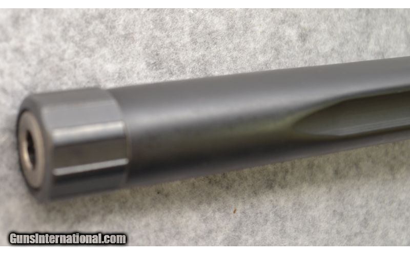 Description: Remington 700 .308 Winchester 24 inch fluted blue barrel, threaded for a brake or suppressor. Tactical 5-R rifling with 1 and 11 1/4 inch twist, the bore is bright with strong rifling. The action and barrel are in excellent condition, the bolt knob has some light scratches none are through the finish. The synthetic stock is in excellent condition, with right and left palm swells on the grip, there is a light mark right behind the sling swivel stud with some brown finish finish removed. The synthetic beaver tail fore end with two sling swivel studs is in excellent condition. The rifle comes with it's factory box. SOLD Caliber Info: .308 Winchester Metal Condition: Action and barrel are in excellent condition, the bolt knob has some light scratches none are through the finish. Wood Condition: Synthetic stock is in excellent condition, there is a light mark right behind the sling swivel stud with some brown finish finish removed. Bore Condition: Bright bore with strong rifling, there is a little fouling. Barrels: 24 inch blue fluted and threaded heavy barrel Triggers: Single smooth adjustable trigger Stock Dimensions: 13 3/4 inch LOP Fore End: Synthetic beaver tail fore end with two sling swivel studs is in excellent condition. Butt Pad: Factory black rubber recoil pad Weight: 8 lbs 3 oz Sights: No sights, drilled and tapped Extras: Comes with factory box Item Location: Wheeling, WV |