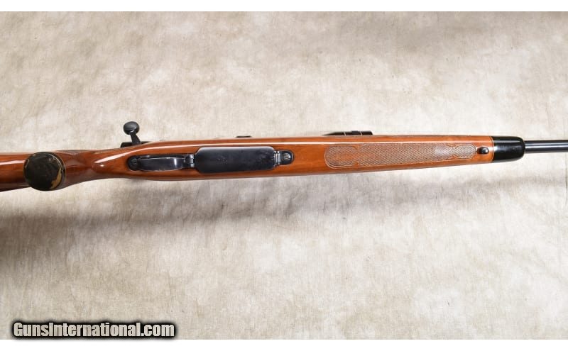 Description: The barrel code "PX" would place YOM ca.: 1973. The rifle features a nice walnut Monte Carlo stock with BDL accents. The stock finish is largely intact, but there are a large number of fine scratches not through the finish. The barrel is clean and shiny, the rifling good. The chambering is a nice crossover pest and medium game cartridge. 6mm Remington SOLD Chambers: 5 rounds Metal Condition: "Very good. Some scuffing around the trigger guard and floor plate, blue wear around the muzzle. Wood Condition: Good to very good. There are a large number of dents in the form of light scratches not through the finish. The finish is worn on the grip cap. Bore Condition: Shiny and bright with crisp rifling. Barrels: 22 inches Triggers: Factory trigger Stock Dimensions: LOP: 13-1/4 inches Butt Pad: Black plate Weight: 8 lb - 9 oz Sights: "Hooded bead and ramp type notch ""iron"" sights, drilled and tapped for scope, outfitted with a Leupold scope. Item Location: Rogers |