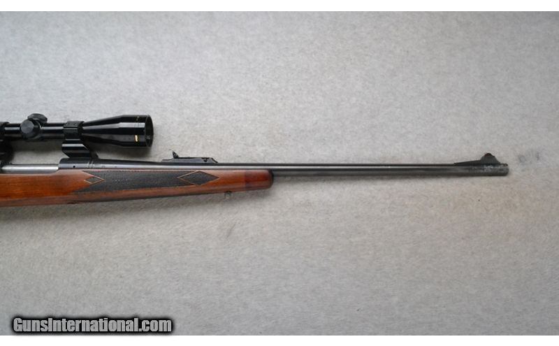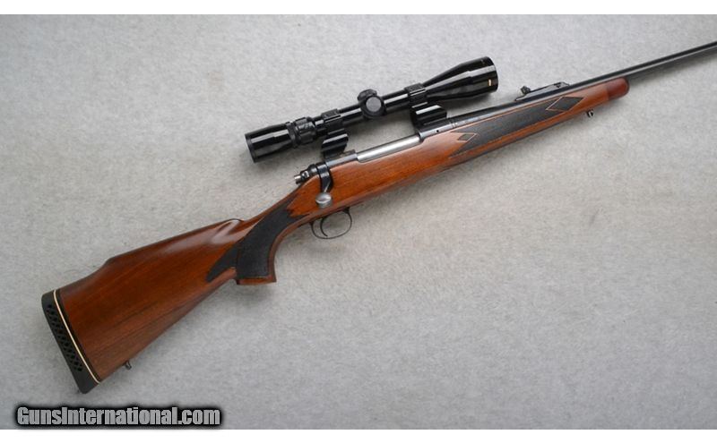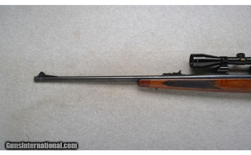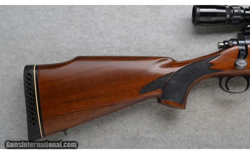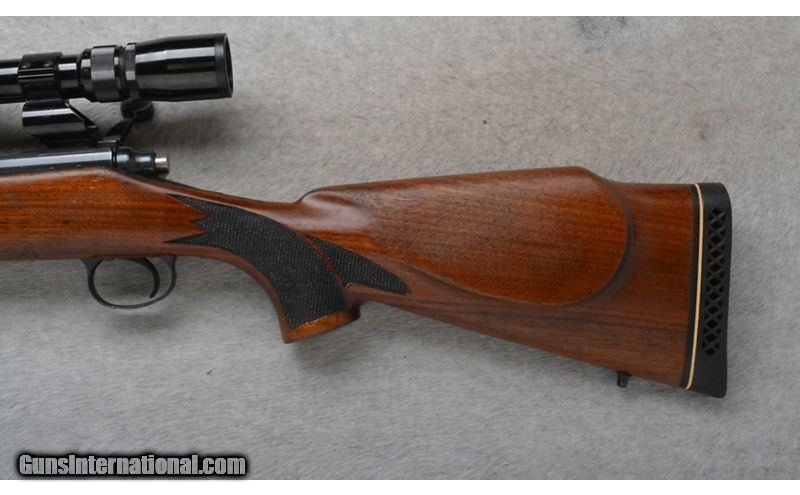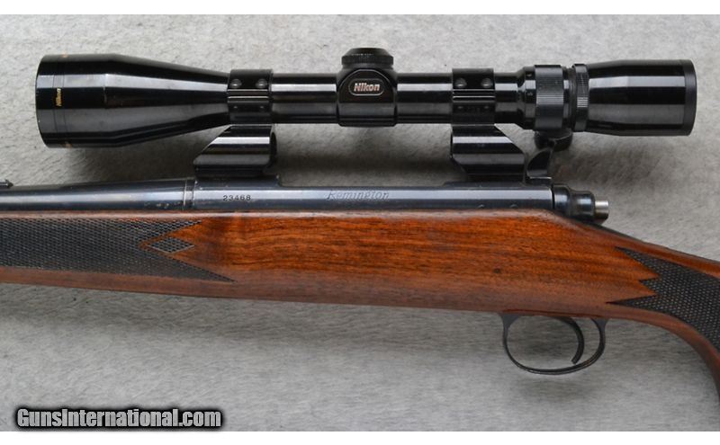 Description: This Remington Model 700 is a right hand bolt action rifle in 7mm Rem. Mag. Cal. It has a 23.5 inch barrel. A raised blade front sight with a brass bead and an adjustable notch middle sight. It is outfitted with a Nikon 3-9x40 Scope. The butt stock is a diamond checkered walnut pistol grip with a raised cheekpiece. The forearm is a diamond checkered grip walnut with a rosewood tip. It has a checkered bolt handle. S/N 23468 7mm Remington Magnum SOLD Chambers: Internal magazine. Metal Condition: Fair. Has blemishes and handling marks. Wood Condition: Fair. Many light handling marks. Bore Condition: Excellent. Barrels: 23.5 inch. Stock Dimensions: LOP 13 1/4 inches. Fore End: Diamond checkered walnut with a rosewood tip. Butt Pad: Remington black rubber recoil pad. Weight: 8 lb. 5 oz. Sights: Raised blade front with a brass bead. Adjustable notch middle. Nikon 3-9x40 Scope. Item Location: Richfield, WI |
