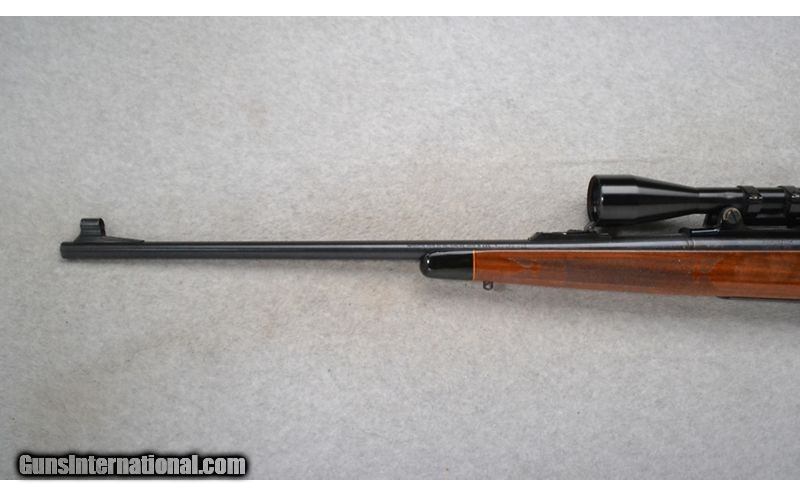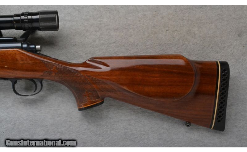 Description: This Remington Model 700 is a right hand bolt action rifle in 7mm Rem. Mag. Cal. It has a 24 inch barrel. A hooded front blade sight and an adjustable notch middle sight. It is out fitted with a 2.5-8 Scope. The butt stock is a checkered grip walnut pistol grip with a black cap. The forearm is a checkered grip walnut with a black tip. The bolt is jeweled and the bolt handle is checkered. 7mm Remington Magnum SOLD Chambers: Internal magazine with a hinged floorplate. Metal Condition: Good. Left side of receiver has light blue wear/freckling. Wood Condition: Good. Light handling marks. Bore Condition: Very Good. Barrels: 24 inch. Fore End: Checkered grip walnut with a black tip. Butt Pad: Remington black rubber recoil pad. Weight: 8 lb. 10 oz. Sights: Hooded blade front. Adjustable notch middle. 2.5-8 power scope. Item Location: Richfield, WI |