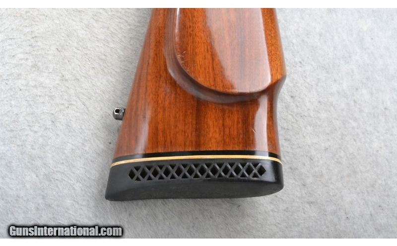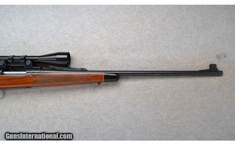 Description: This Remington Model 700 is a right hand bolt action rifle in 7mm Rem. Mag. Cal. It has a 24 inch barrel. A hooded front blade sight and an adjustable notch middle sight. It is out fitted with a 2.5-8 Scope. The butt stock is a checkered grip walnut pistol grip with a black cap. The forearm is a checkered grip walnut with a black tip. The bolt is jeweled and the bolt handle is checkered. 7mm Remington Magnum SOLD Chambers: Internal magazine with a hinged floorplate. Metal Condition: Good. Left side of receiver has light blue wear/freckling. Wood Condition: Good. Light handling marks. Bore Condition: Very Good. Barrels: 24 inch. Fore End: Checkered grip walnut with a black tip. Butt Pad: Remington black rubber recoil pad. Weight: 8 lb. 10 oz. Sights: Hooded blade front. Adjustable notch middle. 2.5-8 power scope. Item Location: Richfield, WI |