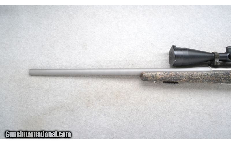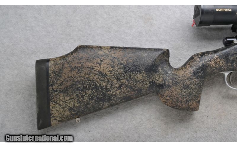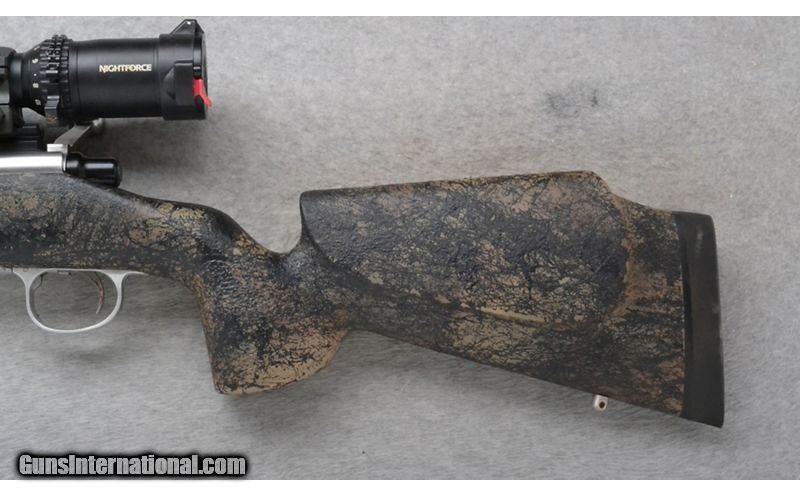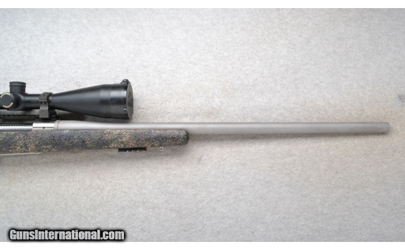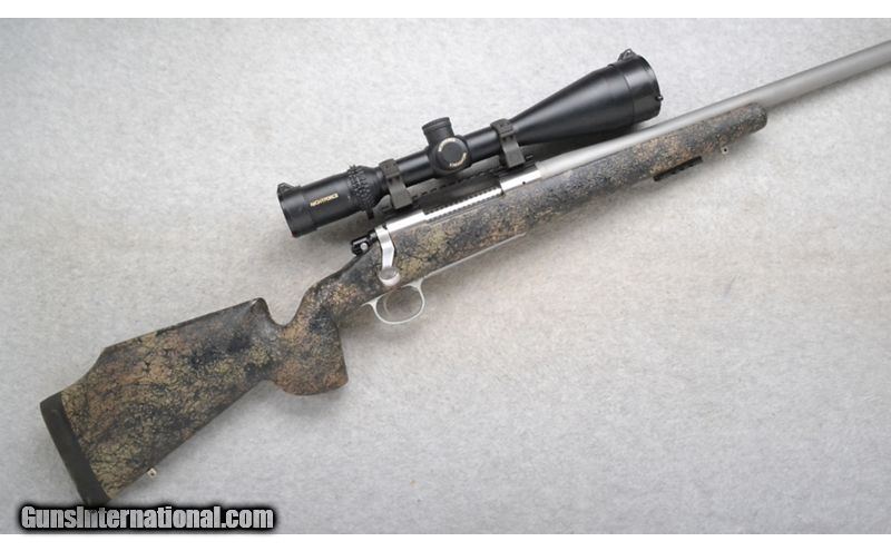Description: This Remington Model 700 is a right hand bolt action rifle in 7mm Rem. Mag. Cal. It has a 24 inch matte stainless steel Bartlein Barrel. It is outfitted with a Nightforce SHV 4-14x56 Scope. No iron sights. It has an adjustable Jewel trigger. The action is trued. The McMillan pillar bedded stock is a tan polymer with textured forearm grip and pistol grip that has a heavy black webbing. It also has a raised cheekpiece. The bolt is jeweled and the bolt handle is checkered. 7mm Remington Magnum SOLD Chambers: Internal magazine with a hinged floorplate. Metal Condition: Excellent with a few minor handling marks. Bore Condition: Excellent. Barrels: 24 inch matte stainless steel Bartlein barrel. Triggers: Adjustable Jewel Trigger. Stock Dimensions: LOP 13 1/2 inches. Fore End: McMillan pillar bedded stock. Textured grip tan polymer with a heavy black webbing. Butt Pad: Decelerator black rubber recoil pad. Weight: 11 lb. 8 oz. Sights: Nightforce SHV 4-14x56 Scope. No iron sights. Item Location: Richfield, WI |