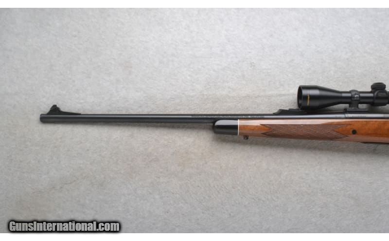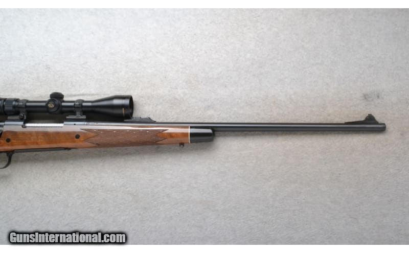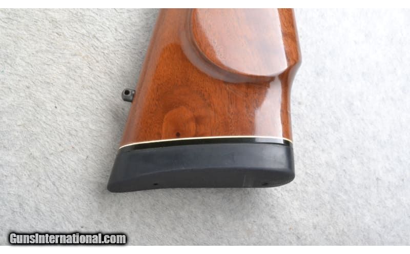 Description: This Remington Model 700 is a right hand bolt action rifle in 7mm Rem. Mag. Cal. It has a 24 inch barrel. A raised blade front sight. It is outfitted with a Nikon 3-9x40 Scope. The butt stock is a diamond checkered grip walnut pistol grip with a raised cheekpiece and black cap. The forearm is a diamond checkered grip walnut with a black tip. Manufactured 1996. 7mm Remington Magnum SOLD Chambers: Internal magazine with a hinged floorplate. Metal Condition: Excellent. Wood Condition: Excellent. A few minor handling marks. Bore Condition: Excellent. Barrels: 24 inch. Stock Dimensions: LOP 13 1/2 inches. Fore End: Diamond checkered grip walnut with a black tip. Butt Pad: Remington black rubber recoil pad. Weight: 9 lb. 0 oz. Sights: Raised blade front. Nikon Buckmasters 3-9x40 Scope. Item Location: Richfield, WI |