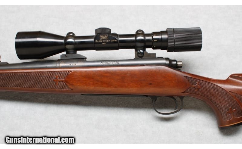 Description: Very good condition, light finish wear, small nicks and scratches, small area of light corrosion on receiver. Classic Model 700 bolt action rifle with 24" barrel, both iron sights and Bushnell scope installed, RH cheek rest and factory Remington recoil pad. 7mm Remington Magnum SOLD Chambers: Bolt action Metal Condition: Very good Wood Condition: Very good Bore Condition: Bright Barrels: 24 Triggers: Factory Stock Dimensions: 13 1/2" LOP Fore End: Checkered with contrasting tip Butt Pad: Factory pad Sights: Bushnell Scope Chief 3-9x scope Item Location: La Vista, NE |