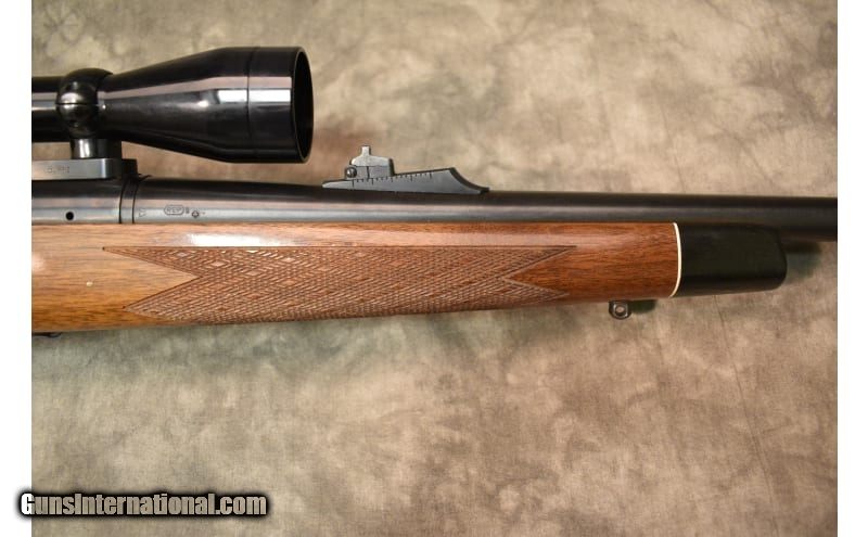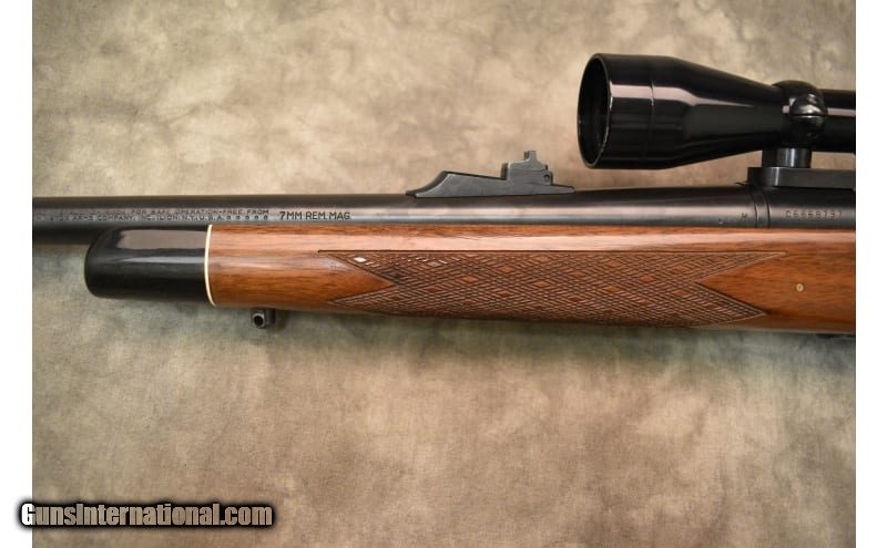 Description: This rifle is in great condition with some signs of use throughout. The bluing is in great shape with some wear near the muzzle, and the wood furniture is in great condition as well with some minor signs of use throughout. This rifle does come with a scope and sling. There is no case with this rifle. 7mm Remington Magnum SOLD Metal Condition: Good Wood Condition: Good Bore Condition: Clear & Bright Barrels: 22 inch Fore End: Wood Checkered Butt Pad: Rubber Weight: 9 lb. 12 oz. Sights: Burris Fullfield 3-9 Scope Item Location: Springfield, MO |