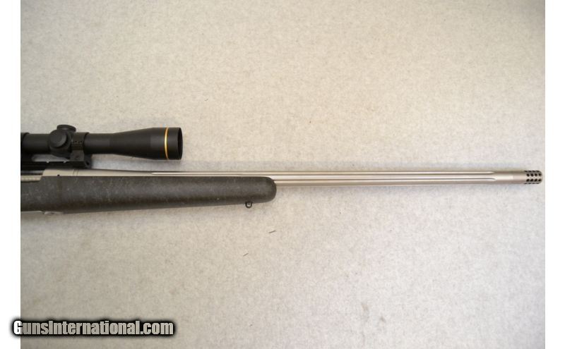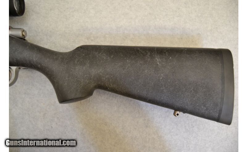 Description: SOLD Caliber Info: 7mm Remington SA Ultra Magnum Metal Condition: Very good; minor pitting about 6 iches from the muzzle on the left side Wood Condition: Furniture is in very good condition; rear sling stud has been replaced (see pictures) Bore Condition: Excellent; has good shine with strong lands and grooves Barrels: 26" Heavy profile fluted barrel with muzzle break Triggers: Matte polished" metal with serrated surface Stock: Dark grey synthetic Stock Dimensions: 13 3/4" LOP Fore End: Widened beavertail fore end Butt Pad: Black rubber Weight: 10lbs Sights: Leupold VX-R 3-9x40mm scope on a one piece Weaver style base Extras: Includes the scope and bases pictured Item Location: Green Bay, WI |