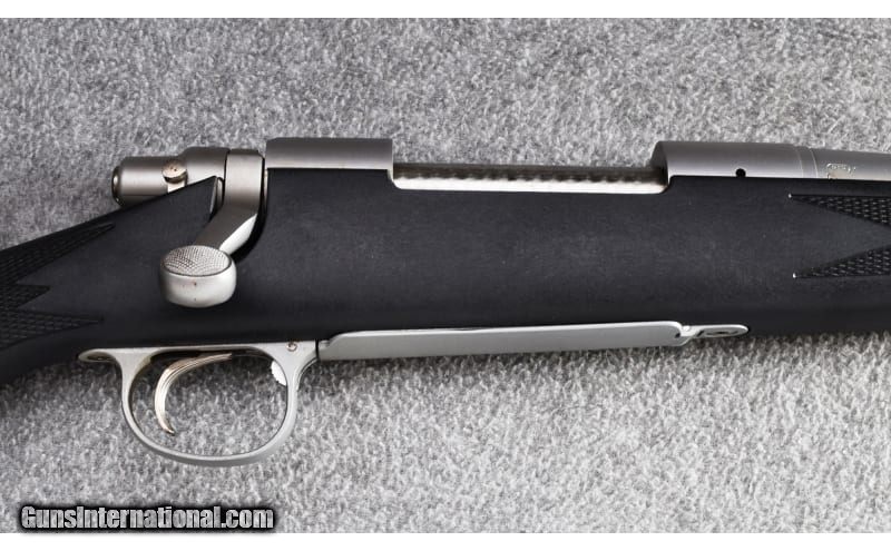 Description: This Remington Model 700 in 7mm Remington Ultra Magnum remains in very good overall condition. The receiver is drilled and tapped for a scope base. Standard black synthetic stock and rubber recoil pad. There are some spots of oxidation found on the barrel. NO box. 7mm Remington Ultra Magnum SOLD Metal Condition: Very Good Bore Condition: Excellent Barrels: 26 Triggers: Factory Stock Dimensions: 13.5" LOP Fore End: Checkered Black Synthetic Semi Pistol Grip Stock - Checkered Black Synthetic Forend Butt Pad: Black Rubber Butt Pad Weight: 7.5 lbs Sights: Drilled and Tapped For Scope Base Item Location: Wheeling |