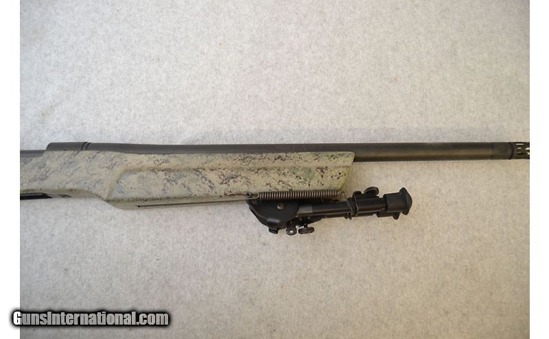 Description: Very good condition overall. Both stock and barrel have a few minor handling marks. Barrel has some run line where it looks like the previous owner may have had some issues putting the new stock on. .308 Winchester SOLD Chambers: Bolt-action fed from detachable magazines. Metal Condition: Good. Wood Condition: Stock is in very good to excellent condition. Bore Condition: Excellent with proper shine and well-defined rifling. Barrels: 20" Heavy profile matte blued with a Vltor VC-301 flash hider attached. Triggers: Factory X-Mark Pro adjustable. Stock Dimensions: Bell & Carlson fully adjustable stock (model 2094) with 13.25" LOP as pictured. Fore End: Tapered forend with integral aluminum rail. Butt Pad: Black rubber pad. Weight: 11lbs 14oz Sights: No iron sights. Comes factory drilled and tapped for scope mounting. Chokes: N/A Item Location: Green Bay |