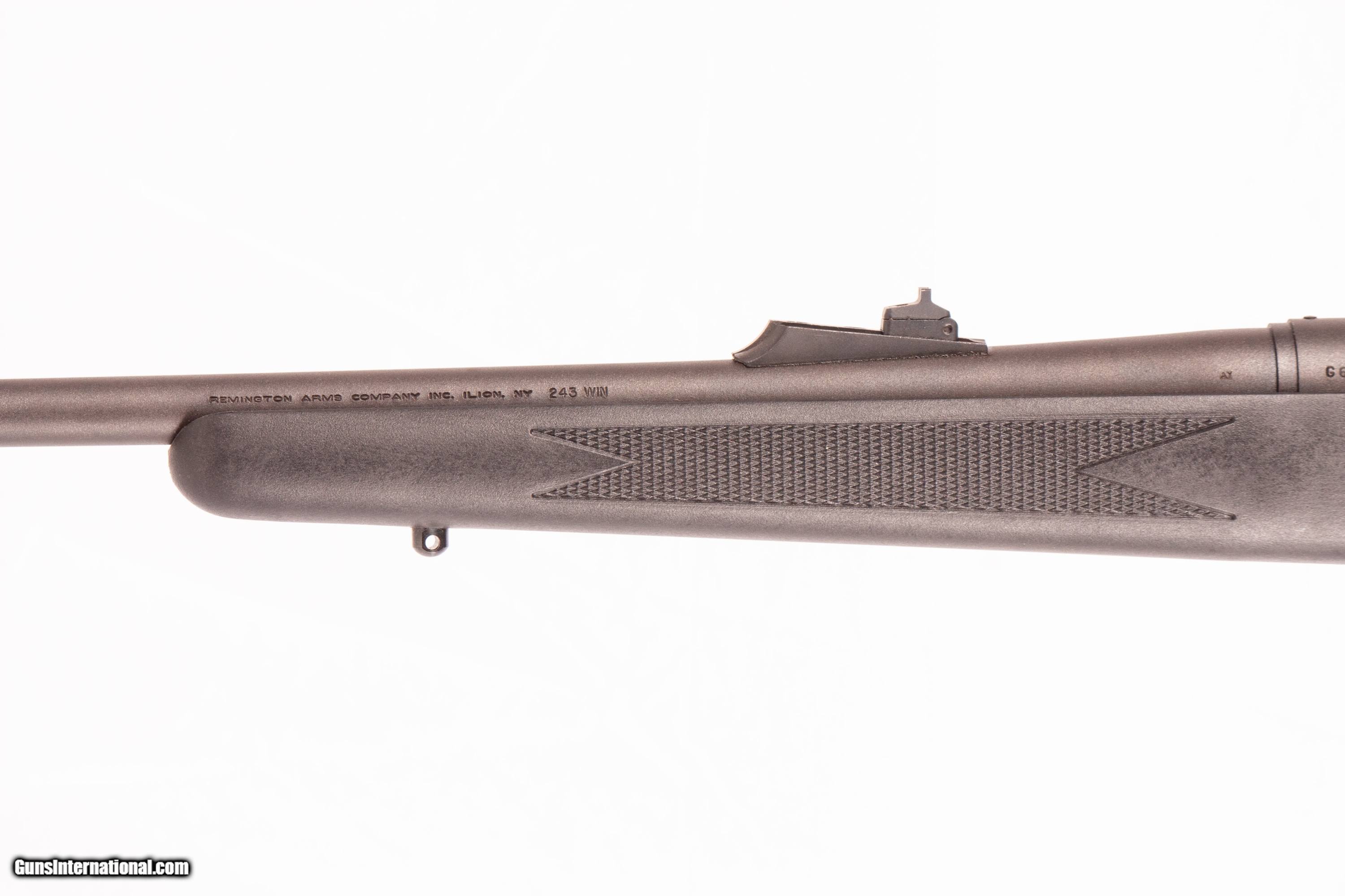 Description: Remington chambered in 243WIN with a 22 inch barrel and a bright & shiny bore. This gun is in excellent condition and is covered by Dury's Lifetime Warranty.