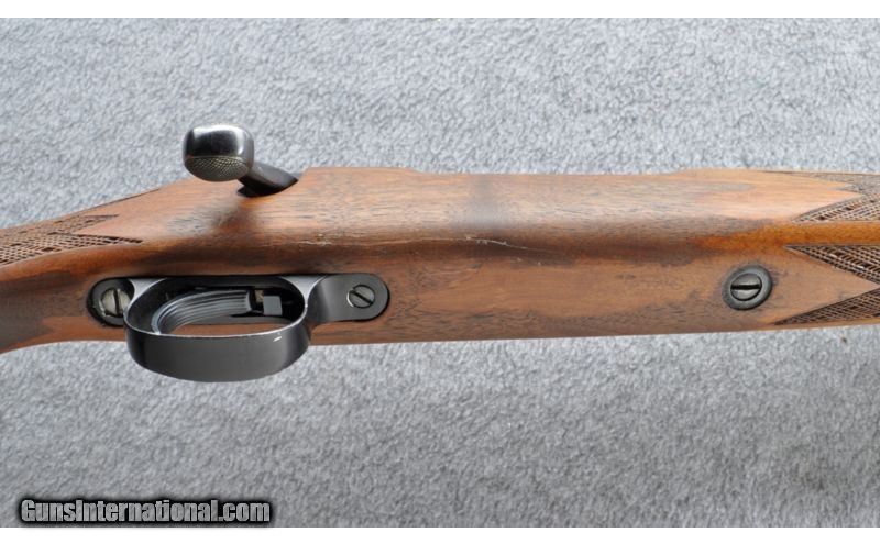 Description: SOLD Manufacturer: 1972 Caliber Info: .30-06 Springfield Metal Condition: Shows plenty of carry wear Wood Condition: Stock has most of the original finish worn off but not too many dents or dings. Left side of the stock has been relieved for a receiver sight. A slight surface crack appears down below the bolt but, has been repaired Bore Condition: Very good bright with strong rifling Barrels: 22 Stock: Press checkered pistol grip Stock Dimensions: 14" LOP Butt Pad: White Line by Pachmayr added Weight: 7 lbs 4 oz Sights: Ramped front blade, Ramped sliding rear leaf Item Location: Grand Junction, CO |