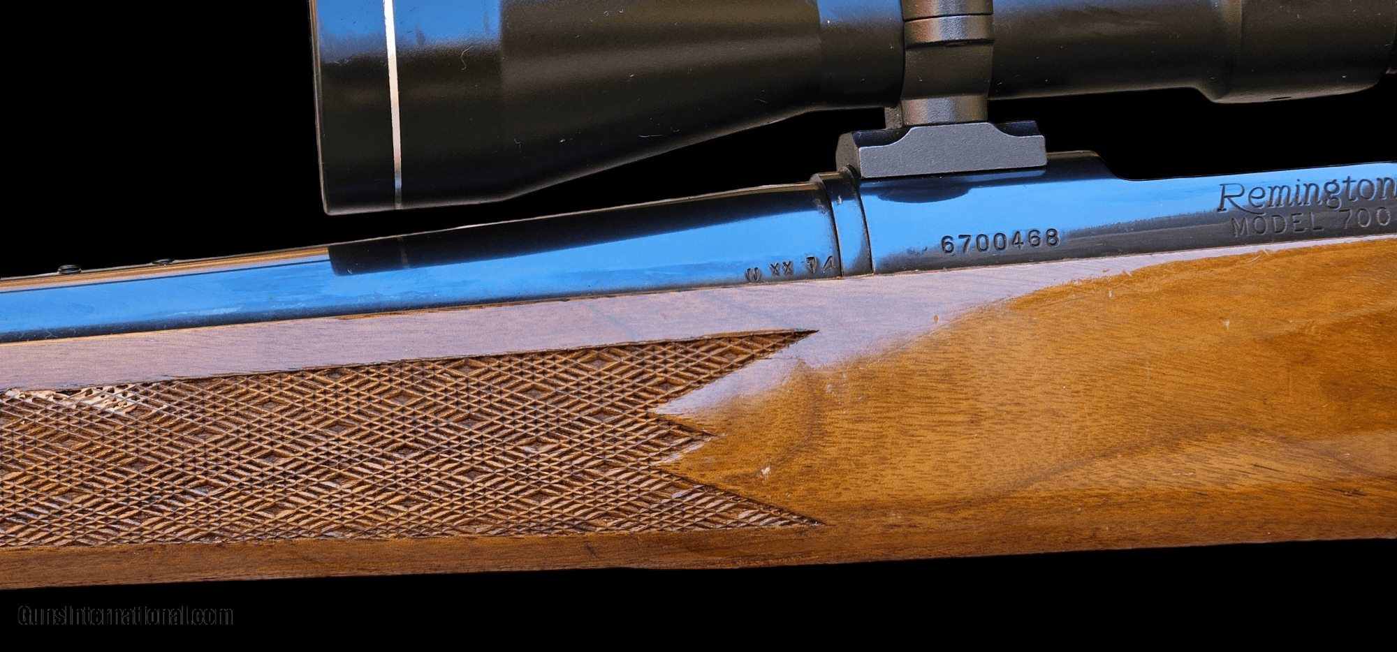 Description: Used Remington 700ADL Deluxe in the hard to find 6mm Rem caliber. The rifle has a 22" barrel with the front sight but is missing the rear sight. The blued finish has some wear but overall retains most of it's finish. The Checkered stock and forearm has normal wear from use but no major chips or cracks. Original plastic butt plate and swivel studs. The bore and rifling are in excellent condition. The bolt correctly numbers to the rifle. A Tasco 3x9 scope is included along with the Leupold rings and bases. Serial number is 6700468. THE RIFLE WILL SHIP IN A BRAND NEW HARD CASE. (NOTE: ADD 3% FOR CREDIT CARDS) SOLD Rifle Caliber: 6mm Remington Manufacturer: Remington Model: 700 ADL Deluxe Serial Number: 6700468 Barrel Length: 22 Condition: Used Action: Bolt |