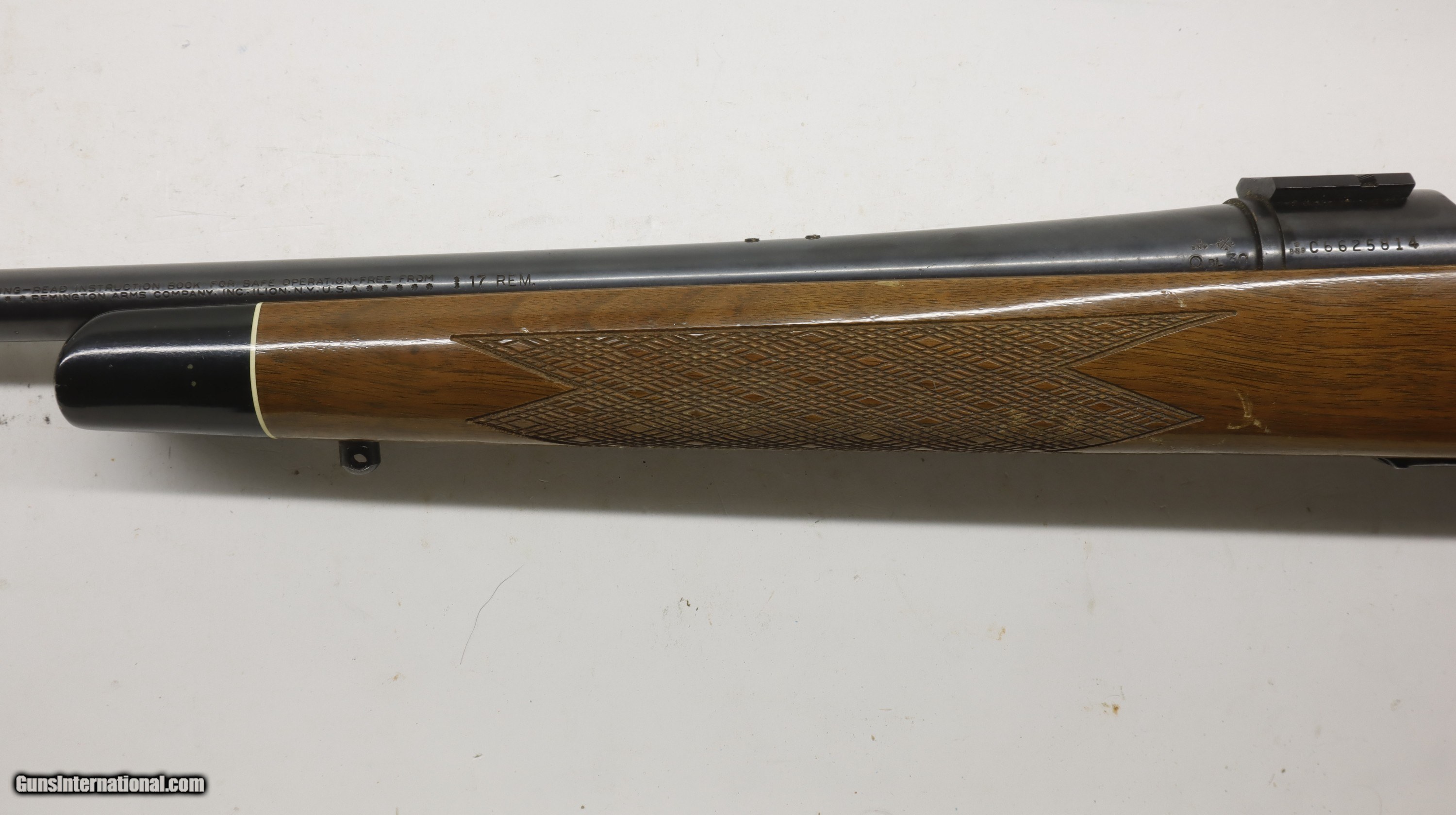 Description: Remington 700 BDL in the hard to fine 17 Rem. 24" standard wieight barrel. SN is C66258xx. Factory finish on both wood and metal, factory butt plate. Good bore, good working order. Comes with weaver bases as shown. We will trade for silver and gold. All my guns (except Layaway) come with a non-firing, 3 day unconditional return privilege, from the day UPS delivers to your dealer. Buyer pays shipping both ways if the gun comes back. Please make sure to make it to your FFL to inspect within the 3 days. We accept personal check, any certified funds, Vennmo or Zellle. We can also take your credit card, +3%. Email me if you would like these pictures sent to you, they will come through bigger and better than on the listing page here. We do offer Layaway. Our standard terms are 25% down, 90 days. Initial deposit is not refundable. Layaway guns do not have an inspection or return policy. Email me with any questions. Please check your local laws to confirm it is legal to own in your state! Buyer pays $60 shipping and insurance in a brand new PLANO hard case to your FFL in the lower 48. AK, HI or PR is extra. I will ship to California, as long as it is legal, NO PROBLEM! I am a licensed FFL, and will include a copy of my FFL with the gun for your dealer’s records. I will ship to a C&R if the gun is eligible. I will ship to California, but you need to confirm the gun is legal where you are, California or other. WE BUY AND CONSIGN GUNS AND GUN COLLECTIONS! We will travel to pick up collections! I am always looking for good clean, old original Winchesters to buy, consign, or trade, especially Pre '64's model 70's and model 54's. WE ALSO TRADE FOR CLASSIC CARS AND TRUCKS! We also trade for gold and silver. SOLD Rifle Caliber: .17 Remington Manufacturer: Remington Model: 700 BDL Barrel Length: 24 Condition: used |