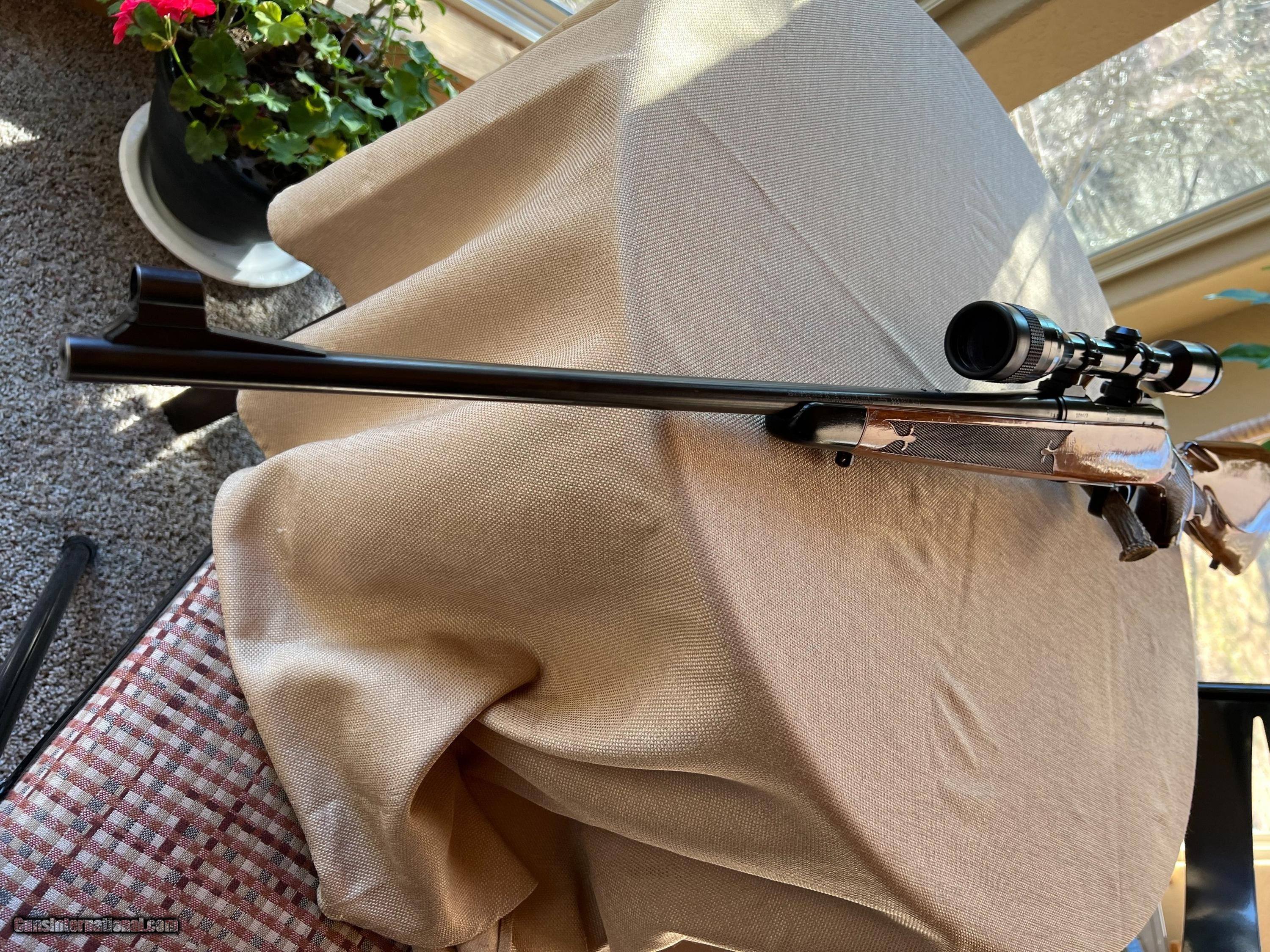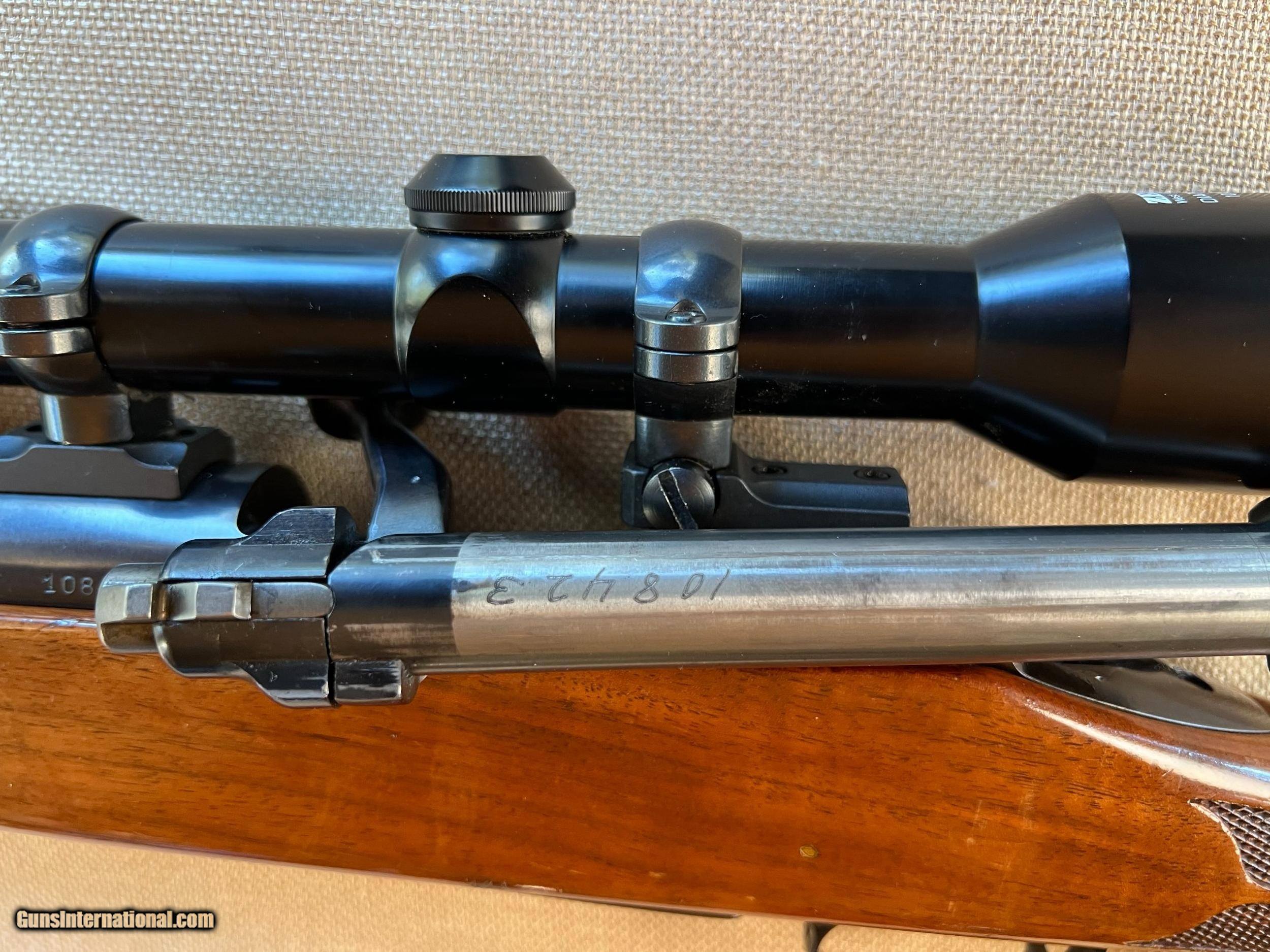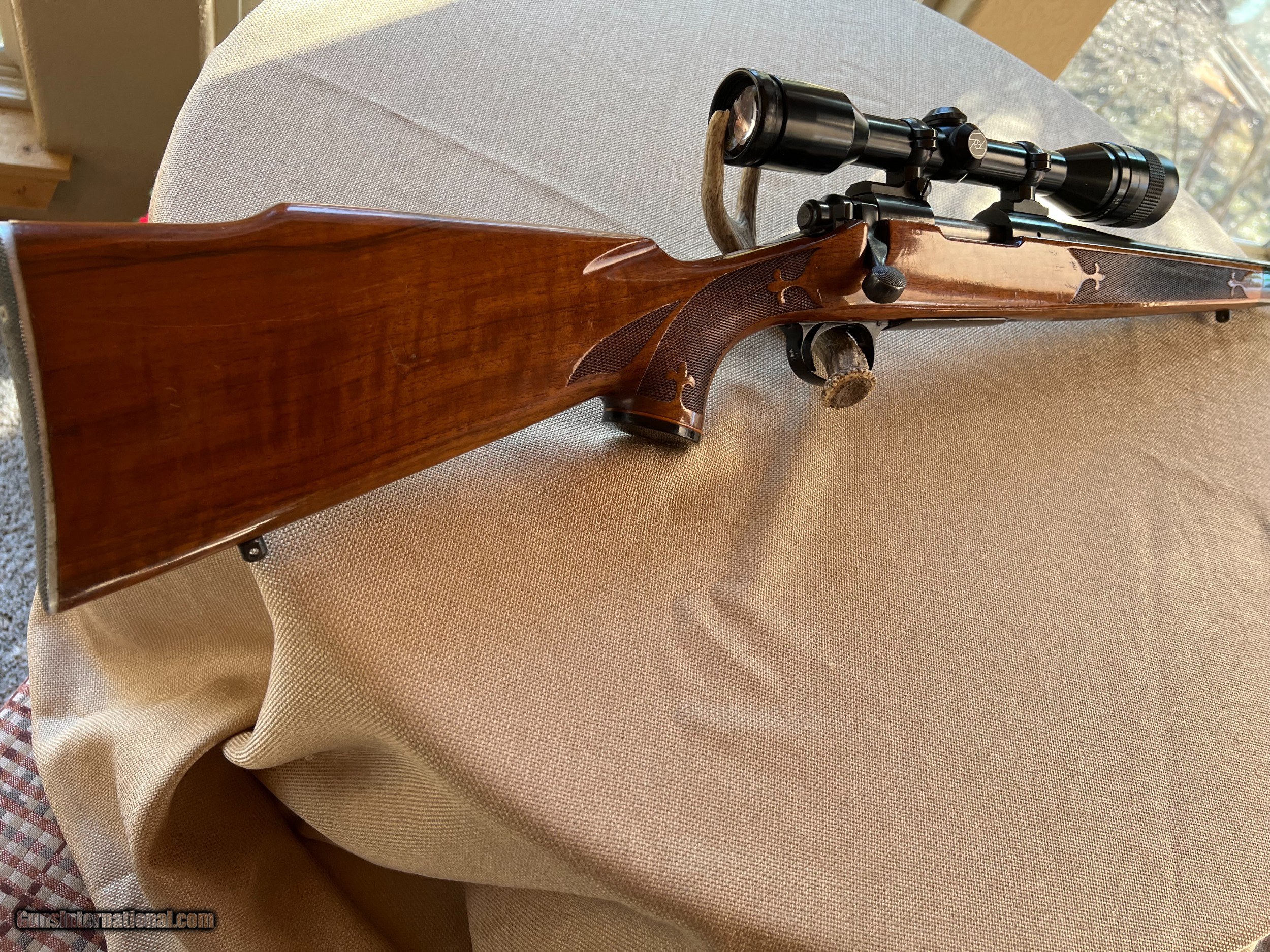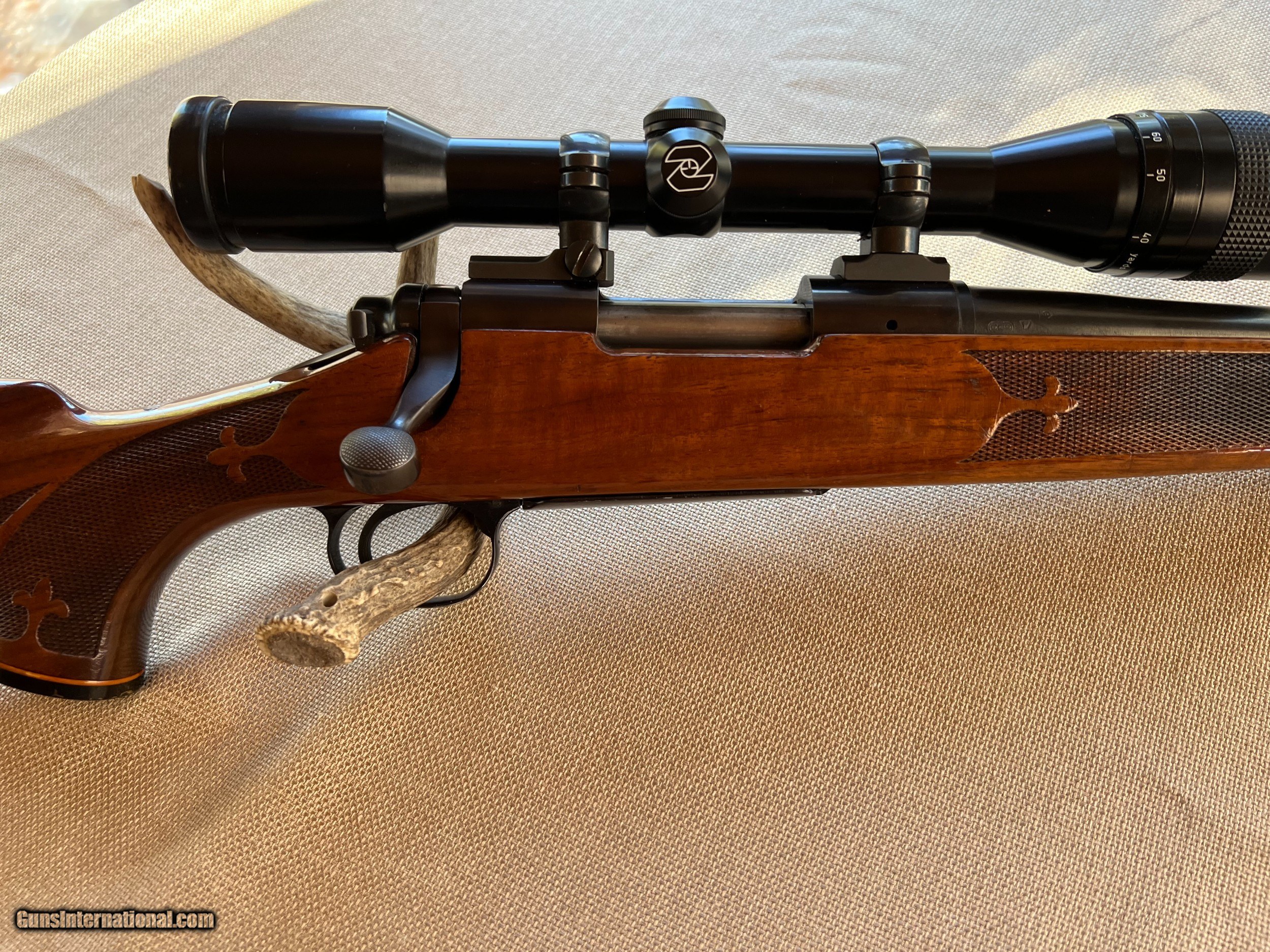 Description: Collectors Quality Early model Remington 700 BDL 222 Remington Mag. Very Ealy model with flat safety and split sear trigger and slotted receiver. Ebony forend and Original alloy butt plate. Hiinged floor plate..... This is a real nice older Remington in a Rare cartridge. SOLD! Original front sight . Rifle only at 2100.00 pllus shipping costs. Zeiss 10 with A/O with rings and bases add 500.00 if yoou buy rifle. Wood is in great condiition aand blueing is in very good condition. Bore is Great! Bolt face looks unfired but i know it has been fired at some point in time just well cared for.. Let the photos do the talking. SOLD |