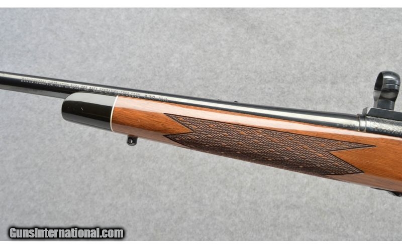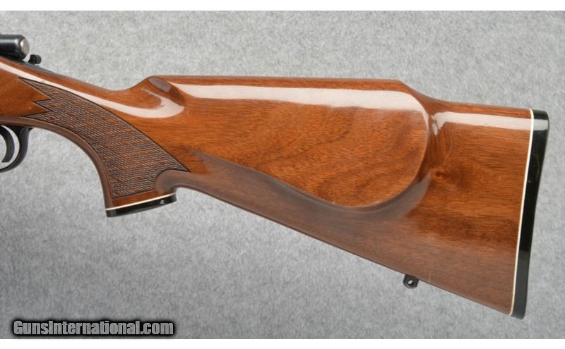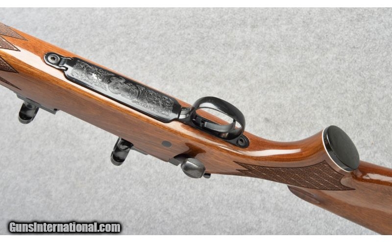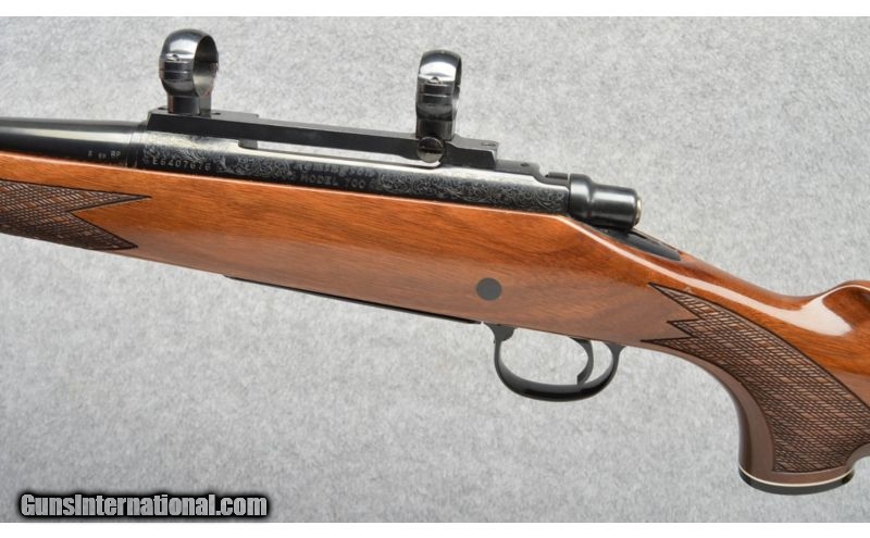 Description: Shiny finish with nice engraving, some handling marks. SOLD Caliber Info: .270 Winchester Metal Condition: Excellent, Few Light Wear and Handling Marks Wood Condition: Few small handling marks Bore Condition: Bright Barrels: 22 Triggers: Factory Stock: High Gloss Finish, RH Cheekpiece Stock Dimensions: 13.5" Lop Fore End: Checkered With Contrasting Tip Butt Pad: Factory Butt Plate Weight: 7 Lbs 8 ozs Sights: 1" Scope Rings Installed Item Location: Buda, TX |