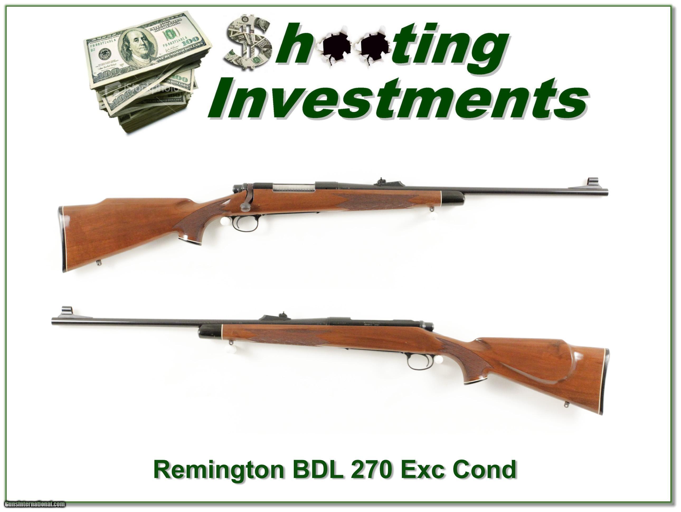 Description: This is an older Remington 700 BDL in 270 Winchester. It is in excellent condition. The blue shows little use and the wood has only a couple minor marks. It will make a nice classic Hunting gun and they just don’t make them like they used too! Shipping and insurance is $35 or $15 more if you want it shipped in a new Plano hard case. Please email me with any questions or larger pictures. (Consign your quality firearms with Shooting Investments for only 10%! Let me know if you have any you would like to sell!) 17-0712 Payment: Payment is by Money Order, Cashiers Check or Personal Check. I can now also accept MasterCard and Visa with a 3% convenience fee. PayPal can be used for some items but never firearms. Please let us know if you would like to pay via PayPal. Shipping: The shipping charge will be listed in each description. It is $35 for most guns. Some heavy guns or those insured for over $2000 will be higher. Shipments to Alaska and Hawaii are higher because air shipment is required. Most firearms are shipped within 5 days of receipt of payment. We prefer shipping at the beginning of the week to avoid firearms in transit over weekends. We package all shipments carefully and insure them for the full purchase price, rounded up to the next $100. In the unlikely event that damage occurs, it is important that you save all packaging material for the claims process. Optics are shipped Priority Mail and most other non-firearm shipments are shipped First Class. Returns: Our return policy is simple. If for any reason you are not pleased with your purchase, you may return your item for a refund. The only exception is ammunition, it cannot be returned. It is important to us that you are happy. Guns cannot be fired or dissembled before returning them and must be returned in the same condition as received. Notification of a return must occur with-in 3 days of receipt at your dealer. Shipping, convenience and dealer fees are not refundable and are the responsibility of the buyer. Lay-a-way: If needed, we offer a 60 day lay-a-way option on most firearms. It is 1/3 now, 1/3 in 30 days and 1/3 in 60 days. Lay-a-way firearm sales are final. Consigning your firearms with Shooting Investments: We will help you get top dollar for your firearms. While most local guns shops charge 20% or more, our fee is only 10% with a minimum of $50. At your local gun shop it might take months to sell. Selling on-line provides instant access to thousands of interested buyers. You won’t find any other on-line dealer willing to sell your firearms for only 10% or listing every gun on 4 separate s. Selling through an House typically costs the seller 15% and the buyer an addition 15% (so 30%) and you have to wait several months to sell and longer to receive funds. If properly priced, we will sell your firearms in a week or two. Send us an email or give us a call and we’ll explain how easy it is for you to get top dollar. Trading: We collect guns and usually just trade for guns we want to add to our collections. We often sell guns for others wanting to purchase one of ours. We find this the most fair to both of us. Our Commission is only 10% and we hold the gun you want until yours sells. Please contact us if you want to sell one of yours to buy one of ours. Help for California Buyers: We are happy to ship to California. It is the buyer’s responsibility to make sure any item you buy is legal in your state. We are also happy to help with your purchase of a firearm from someone other than us. If you see a gun you would like to buy but the seller can’t or won’t ship to California we can help. You buy the gun and have it shipped to us. We’ll then ship it to your California dealer. The cost for this service is only $30 + shipping. Let me know if we can help! SOLD |
