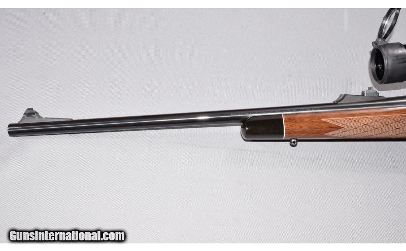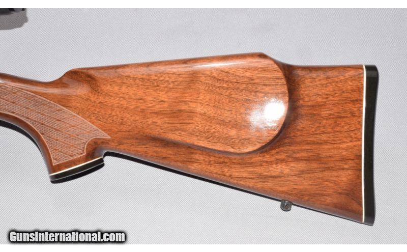 Description: One of the most iconic and traditional Hunting rifles of North America. This a excellent example of that long history of quality metal and wood working. SOLD Caliber Info: 30-06 Springfield Chambers: Jeweled bolt action repeater Metal Condition: Very Good - minor handling marks Wood Condition: Very Good - minor handling marks Bore Condition: Very Good - bright with deep rifiling Barrels: 22 inch Blued Triggers: Single Stock Dimensions: 14 inch LOP, 42 inch Overall Fore End: All around checkering Butt Pad: Factory hard Sights: Leupold 3-9x40, see thru mounts adjustable rear fixed front Iron Sights Item Location: Chesterfield, MI |