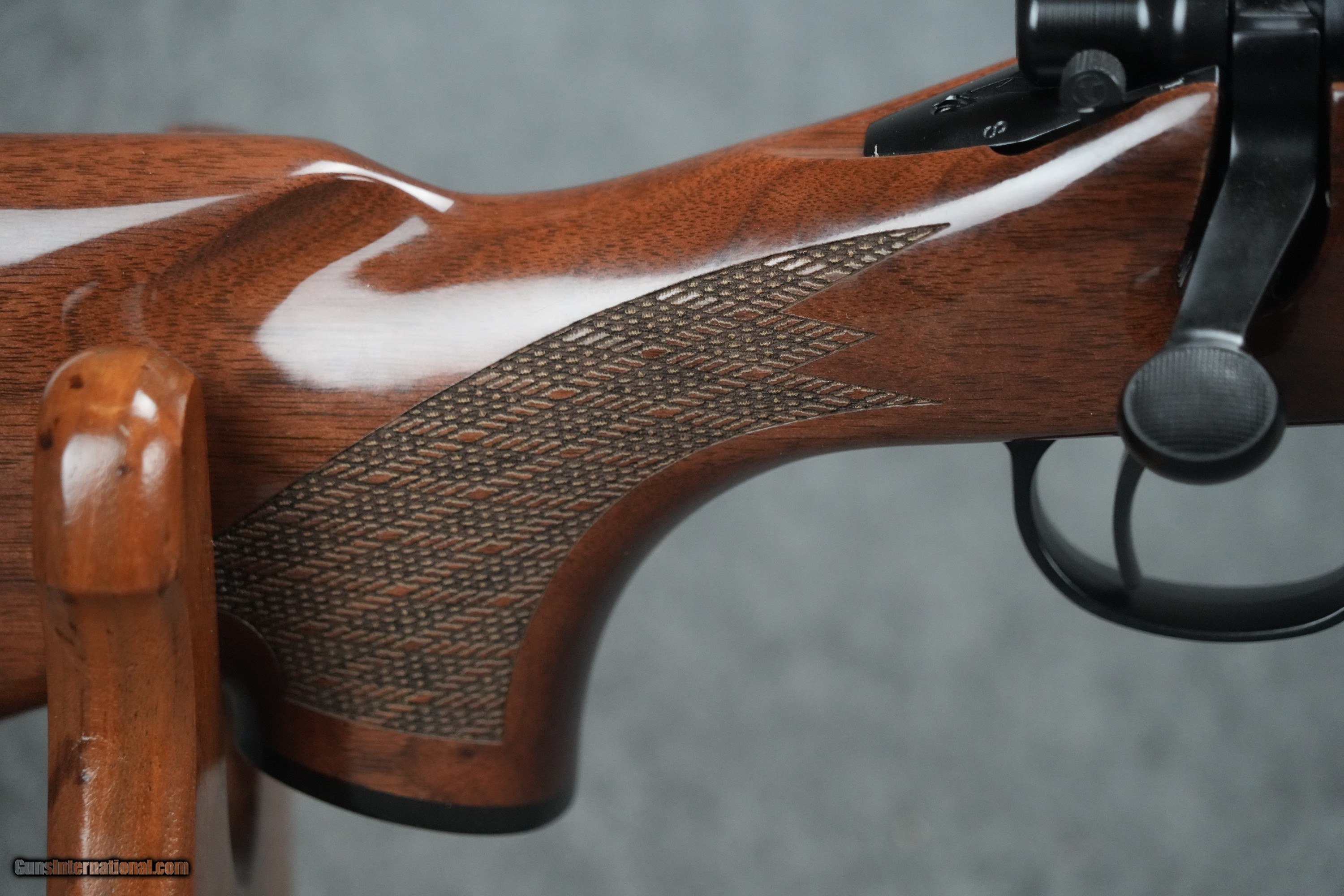 Description: The Remington Model 700 BDL has no equal, and is a superior performer in every way. It has become the standard footprint by which all other centerfire rifles are measured and continually fall short. Its strong, smooth action, consistent accuracy, classic beauty and unequaled value have made The Model 700 BDL the hunter's favorite centerfire rifle for more than 60 years. The high-gloss American walnut stock is enhanced by a distinctive black fore-end cap, Monte Carlo comb raised cheekpiece, and cut checkering. Metalwork has our rich, deep bluing for beauty and protection. Other features include a hinged magazine floorplate, sling swivel studs, hooded ramp front sight and adjustable rear sight. A true classic, and not going anywhere anytime soon. 5R Barrel Drilled & tapped for scope mount Sling Studs Hinged floor-plate Receiver machined from solid-steel bar stock for unrivaled uniformity and strength Cylindrical receiver design provides a solid bedding base in the stock for consistent shot placement Recessed bolt face locks up inside the counter-bored breech of the barrel which is surrounded by the receiver, forming "three-rings-of-steel" enclosing the cartridge case head for unparalleled strength Integral extractor is set in a groove inside the rim of the bolt face, uniformly supporting the cartridge head MANUFACTURER: Remington MODEL: 700 BDL TYPE: Rifle ACTION: Bolt Action CALIBER: 30-06 FINISH: Polished Blue FINISH TYPE: Blued STOCK: Wood Stock STOCK/GRIPS: Gloss Finish American Walnut BARREL: 22" OVERALL LENGTH: 41.6" DRILLED / TAPPED RATE-OF-TWIST: 1-in-10 CAPACITY: 4 SIGHTS: Hooded Ramp FS w/ Adj. RS SIGHT TYPE: Adjustable Sights SAFETY FEATURES: 2-Position Thumb Safety ADDL INFO: Sling Swivel Studs ADDL INFO: Monte Carlo Stock MFG MODEL NO: R25793 SOLD Rifle Caliber: .30-06 Springfield Manufacturer: Remington Model: 700 BDL Barrel Length: 22" Barrel Condition: BRAND NEW |