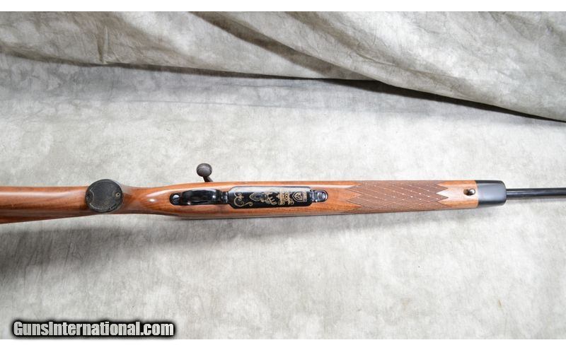 Description: This Remington features skip-line checkering on the Monte Carlo walnut stock. The bolt is jeweled and the bolt knob is knurled. It isdrilled and tappedfor mounting your choice of scope. The hinged floor plate is engraved with DU logo and deer head, .30-06 Springfield SOLD Chambers: Internal magazine with hinged floor plate. Metal Condition: Very good. Small amount of bluing loss at the muzzle and has some handling marks on the barrel and floor plate. Wood Condition: Very good. A moderate number of handling marks and some of the finish is flaked away. Barrels: "22 inch, blued, no sights. Triggers: Factory trigger. Stock Dimensions: 13 - 1/4 inch LOP. Fore End: Black tip cap. Butt Pad: Black plate. Sights: Drilled and tapped for your choice in scopes. Item Location: Rogers |