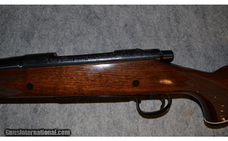 Description: Engraved Receiver and Floorplate SOLD Manufacturer: S/N: E67356XX Caliber Info: .300 Remington Ultra Magnum Metal Condition: Good Wood Condition: Good Bore Condition: Good Barrels: 26 Stock: Skipline Checkered Walnut Stock Dimensions: 13 1/2" LOP Fore End: Black Tip Butt Pad: Added Limb Saver Pad Weight: 8 lbs. Sights: Receiver Drilled and Tapped for Scope Mounts , Barrel Drilled and Taapped for Iron Sights Item Location: Louisville, KY |