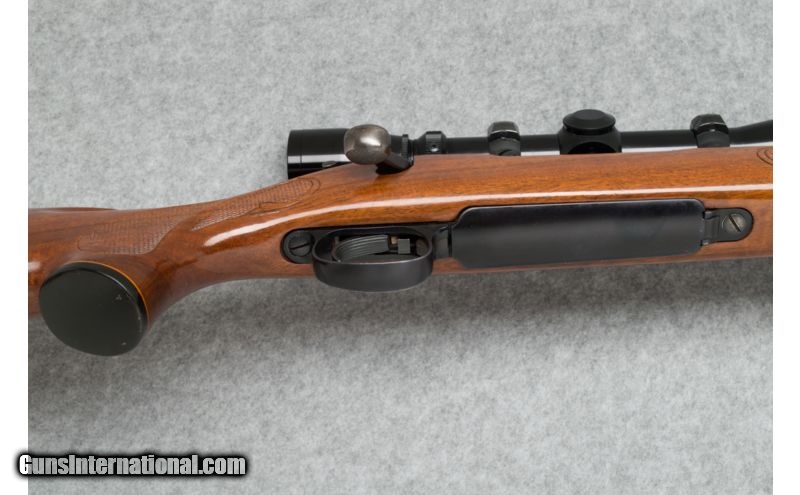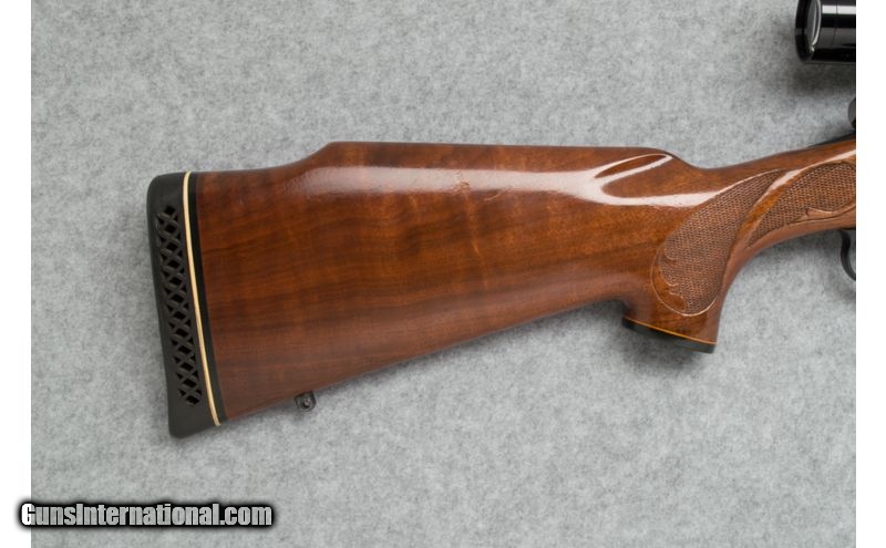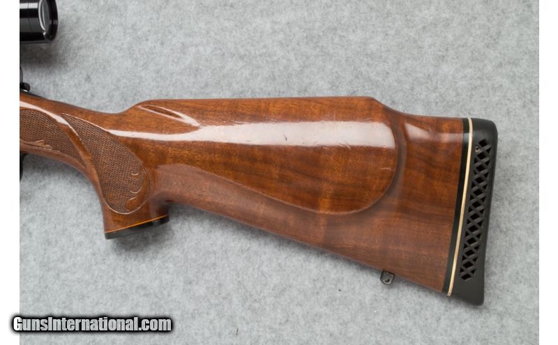 Description: Used. SOLD Caliber Info: .300 Win. Mag. Metal Condition: Very good; overall Wood Condition: Very good; some light scratches and field marks Bore Condition: Clean and sharp Barrels: 24 Triggers: Wide grooved target style Stock: Checkered pistol grip walnut Stock Dimensions: LOP - 13 1/4 Fore End: Checkered walnut; black end and grip caps Butt Pad: Black rubber pad Weight: 8 lbs. 7 oz. (with scope) Sights: No sights; Leupold scope Extras: Leupold VX II 3-9 x 40mm scope and mounts. Item Location: Sun Prairie, WI |
