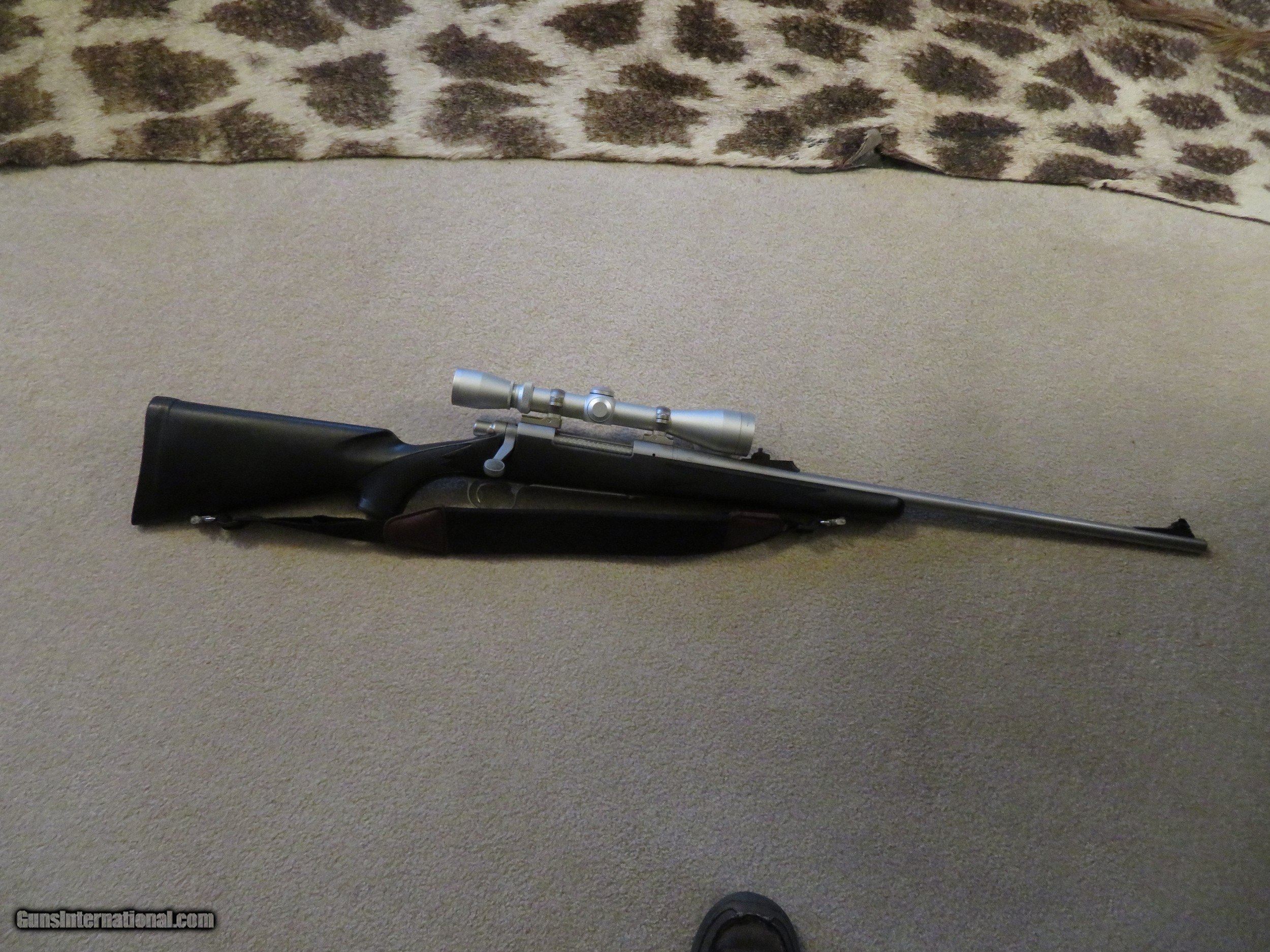 Description: This Remington 700 BDL 375 H&H Mag in stainless steel is in mint condition. Both metal and stock are 99% +. It comes with a Leupold 3x9-40 stainless scope and Leupold "Quick Release mounts". This is an accurate rifle. The rifle ships with a box of 300 GR Federal Premium ammo. This is an FFL-required transaction. The price is $1550.00 Sale pending SOLD Rifle Caliber: .375 H&H Magnum Barrel Length: 24 LOP: 13 1/2 |