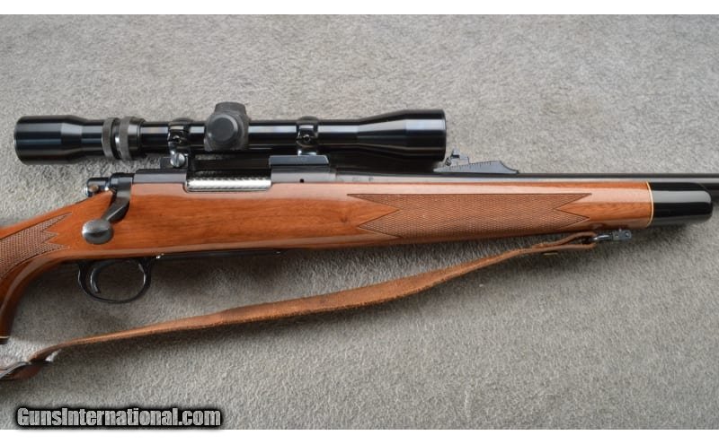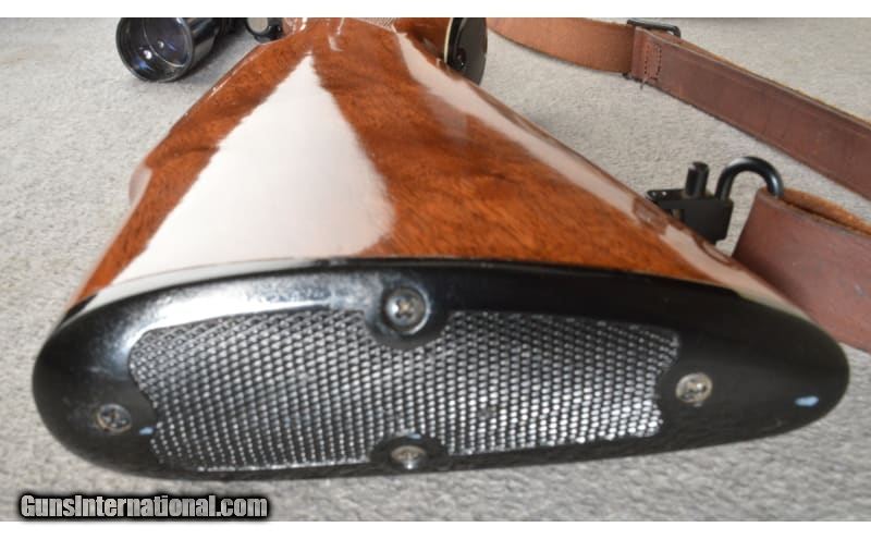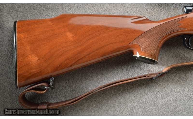 Description: Remington Model 700 BDL Bolt Action 6 mm Remington Rifle with Weaver V7-II 2.5x7 Scope. This is an earlier Remington Model 700 BDL that has a hinged floorplate, wood stock, cut checkering, black fore-end tip and pistol-grip cap, jeweled bolt, finished in polished blue with iron sights, leather sling. Excellent condition. 6mm Remington SOLD Chambers: 4+1 bolt action repeater. Metal Condition: Overall 97%. Wood Condition: Light handling marks. Bore Condition: Strong bright bore. Barrels: 22" barrel. Triggers: Single. Stock Dimensions: LOP 12.5". Fore End: Checkered walnut. Butt Pad: Hard rubber. Weight: 9 LBS Sights: "Standard sights, Weaver scope. Item Location: Owatonna, MN |