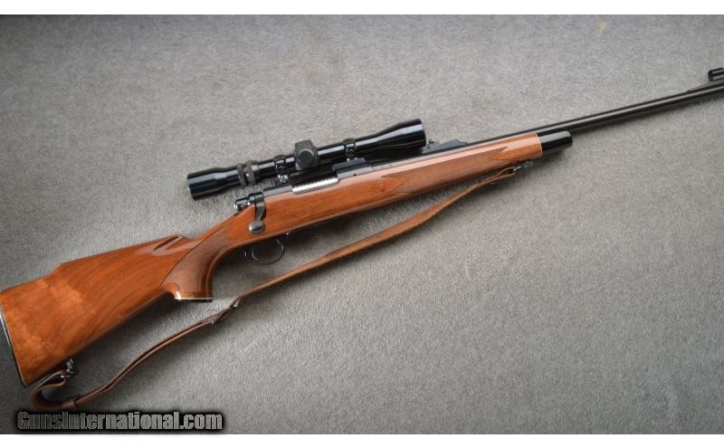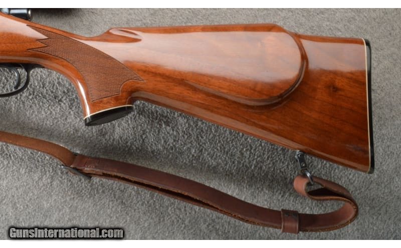 Description: Remington Model 700 BDL Bolt Action 6 mm Remington Rifle with Weaver V7-II 2.5x7 Scope. This is an earlier Remington Model 700 BDL that has a hinged floorplate, wood stock, cut checkering, black fore-end tip and pistol-grip cap, jeweled bolt, finished in polished blue with iron sights, leather sling. Excellent condition. 6mm Remington SOLD Chambers: 4+1 bolt action repeater. Metal Condition: Overall 97%. Wood Condition: Light handling marks. Bore Condition: Strong bright bore. Barrels: 22" barrel. Triggers: Single. Stock Dimensions: LOP 12.5". Fore End: Checkered walnut. Butt Pad: Hard rubber. Weight: 9 LBS Sights: "Standard sights, Weaver scope. Item Location: Owatonna, MN |
