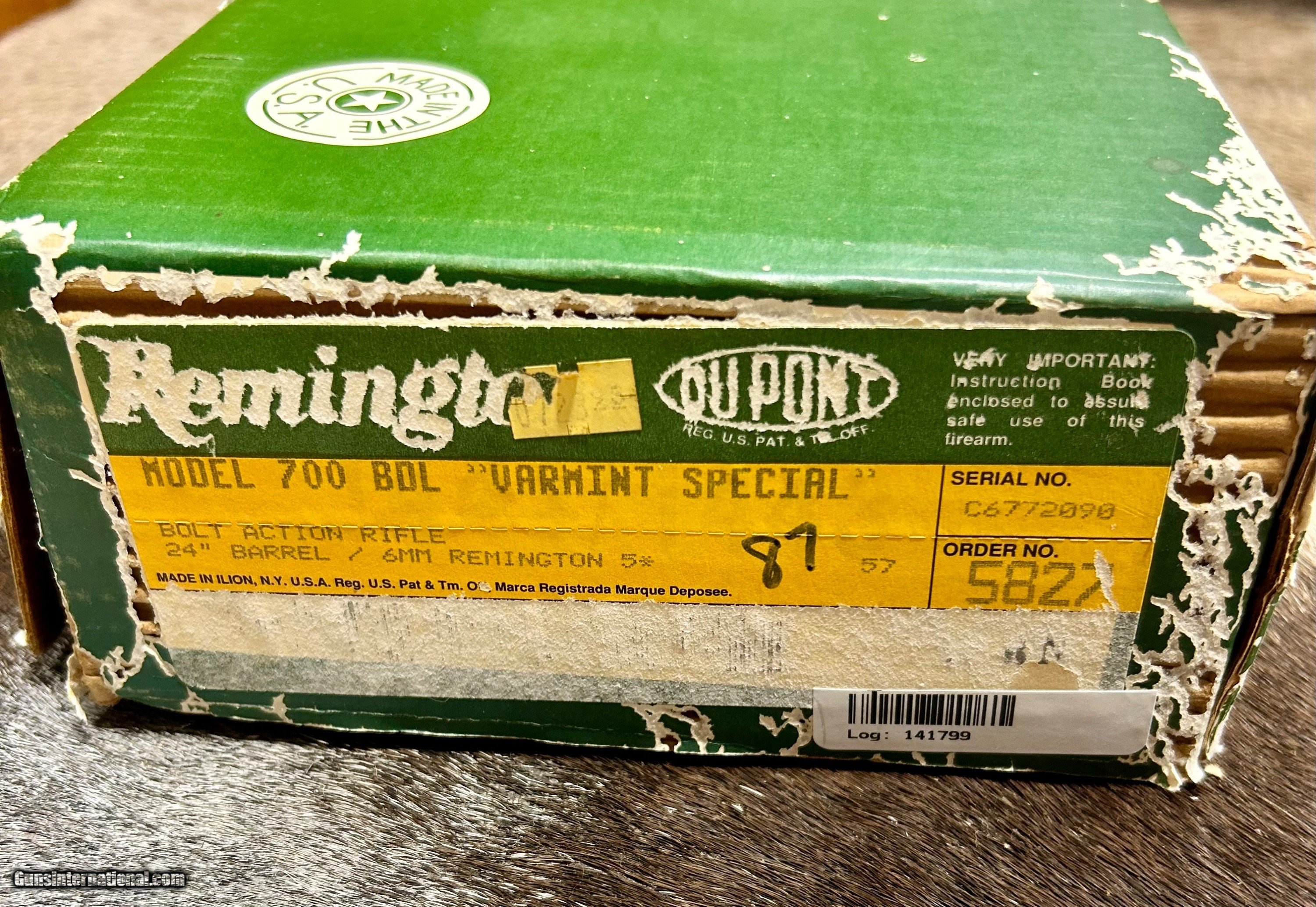Description: Up for sale we have a brand new in the box Remington 700 BDL Varmint, chambered in the very illusive 6mm cartridge. These are impossible to find in this condition and it their original boxes. My honest humble opinion is that I don't think this gun has ever been fired, it is flat brand new. Included is the owners manual. Shipping and ins will be $99 and to FFL only. Please don't hesitate to ask any questions or requests anymore photos. SOLD Rifle Caliber: 6mm Remington