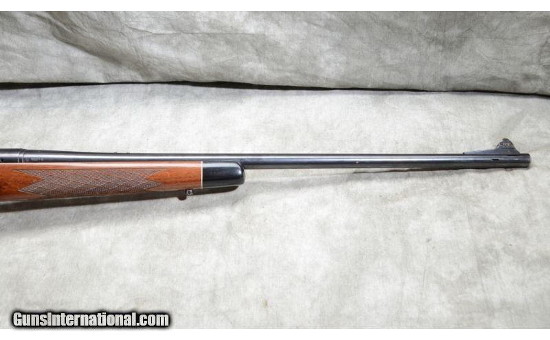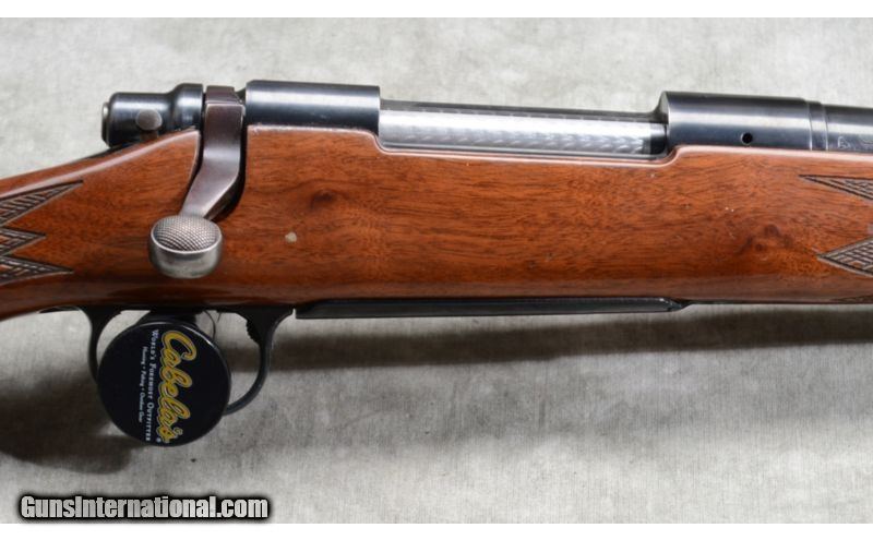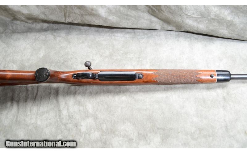 Description: SOLD Caliber Info: 7 mm Remington Magnum Chambers: 3 + 1 capacity, internal magazine with hinged floor plate. Metal Condition: Good. The barrel has a couple of scuff marks on it. Wood Condition: Good. A number of shallow scratches and digs. Bore Condition: Shiny and bright with good rifling. Barrels: 24 Inch - blued and ported. Triggers: Factory trigger. Stock: Checkered pistol grip walnut with grip cap Stock Dimensions: 13 - 1/2 Inch LOP. Fore End: Tip cap. Butt Pad: Thick rubber pad. Weight: 7 lb. - 14 oz. Sights: Gold bead foresight. Rear sight removed. Drilled and tapped for scope. Item Location: Rogers,, MN |