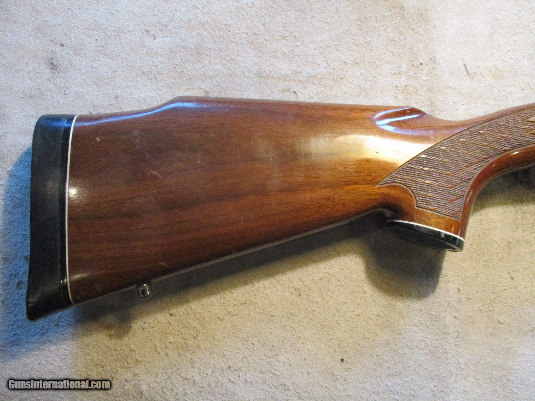 Description: Remington 700 BDL, 7mm Remington Mag, 24" barrel. Comes with factory open sights and a set of bases in the factory holes. SN is A63744xx. Factory finish on both wood and metal, nice clean classic rifle. We will trade for silver and gold. has now started collecting tax for states that mandate it, if applicable they will add it to your total. Email me if you would like these pictures sent to you, they will come through bigger and better than on the listing page here. We do offer Layaway. Our standard terms are 25% down, 90 days. Initial deposit is not refundable. Email me with any questions. Please check your local laws to confirm it is legal to own in your state! Buyer pays $25 shipping and insurance to your FFL in the lower 48. AK, HI or PR is extra. I will ship to California, NO PROBLEM! All my guns come with a non-firing, 3 day unconditional return privilege, from the day UPS delivers to your dealer. Buyer pays shipping both ways if the gun comes back. I can add a new hard case by PLANO for secure shipping for $25 if the buyer wishes (highly recommended, cheap insurance, really helps keep the UPS monster from eating my guns!). Guns sold in Kansas are subject to Kansas sales tax. I am a licensed FFL, and will include a copy of my FFL with the gun for your dealer’s records. I will ship to a C&R if the gun is eligible. I will ship to California, but you need to confirm the gun is legal where you are, California or other. WE BUY AND CONSIGN GUNS AND GUN COLLECTIONS! We will travel to pick up collections! I am always looking for good clean, old original Winchesters to buy, consign, or trade, especially Pre '64's model 70's and model 54's. WE ALSO TRADE FOR CLASSIC CARS AND TRUCKS! We also trade for gold and silver. SOLD Rifle Caliber: 7mm Remington Magnum Manufacturer: Remington Model: 700 BDL Barrel Length: 24 Condition: Used |