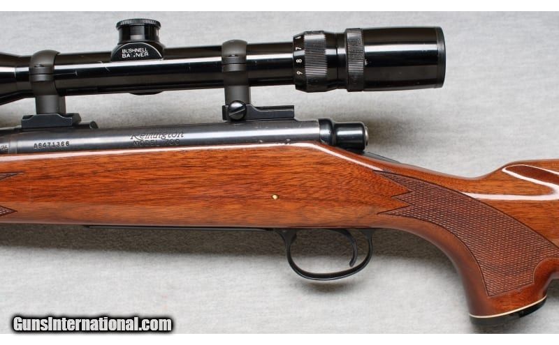 Description: Excellent condition, light wear, few small scratches. Remington 700 bolt action rifle with 24" heavy barrel, blued metal, adjustable iron sights and Bushnell Banner 3-9x scope installed. Smooth action, jeweled bolt and crisp trigger pull. Gloss finished checkered wood, contrasting forend tip, right hand cheek rest and Remington factory recoil pad. 8mm Remington Magnum SOLD Chambers: Bolt action Metal Condition: Excellent Wood Condition: Excellent Bore Condition: Bright Barrels: 24 Triggers: Factory Stock Dimensions: 13 1/2" LOP Fore End: Checkered with contrasting tip Butt Pad: Factory pad Sights: Bushnell 3-9x scope Item Location: La Vista, NE |