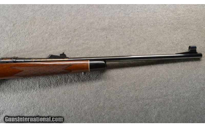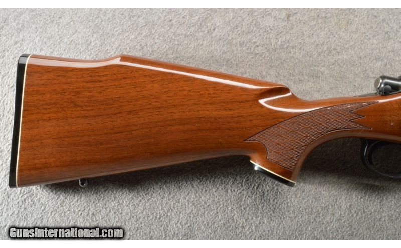 Description: This is an As New In Box Remington model 700 BDL Custom Deluxe from the Minnesota Deer Hunters Association. This as new rifle has a 22 inch gloss blue barrel with factory sights along with some light engraving and gold inlays. The receiver is also a gloss blue with engraving and gold inlays. The walnut stock is also as new and is free from and dings or dents. The stock has very nice walnut with a Monty Carlo cheek, sling studs, black grip and forearm caps and very nice French skip-line checkering. This rifle was issued by the Minnesota Deer Hunter Association and is gun number 30 of 60 from 1984 and remains as new in box. SOLD Manufacturer: 1984 Caliber Info: .30-06 Sprg. Chambers: Bolt action repeater. Metal Condition: ANIB. Wood Condition: ANIB. Bore Condition: ANIB. Barrels: 22 inch gloss blue with sights. Also has light engraving and gold inlays. Triggers: Single blue. Stock: Very nice walnut with a Monty Carlo cheek, sling studs, black grip cap and very nice French skip-line checkering. Stock Dimensions: 13 1/4 inch LOP. Fore End: Matching walnut with a black tip, sling stud and checkering. Butt Pad: Black Remington butt plate. Weight: 7 Lbs 4 Oz. Sights: Adjustable rear and a hooded front blade. Extras: Comes in the factory box with the paperwork. Item Location: Owatonna, MN |