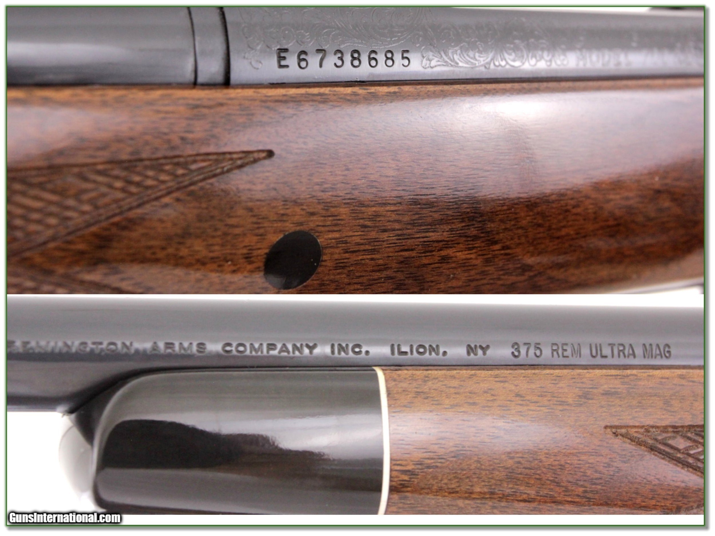 Description: Big game hunters and Remington collectors, this is a very hard to find Remington 700 Deluxe with engraved receiver in the hard-hitting 375 RUM! The gun is in top condition with no marks on blue or wood that I find. The barrel is 26in and the rear site was removed. It has a limbsaver recoil pad to absorb the 375 recoil. It will make an excellent big game gun o be a fine addition to your collection. Shipping with insurance is $39. Please email me with any questions or larger pictures. (Consign your quality firearms with Shooting Investments for only 12%! Let me know if you have any you would like to sell!) 19-0732 Payment: Payment is by Money Order, Cashiers Check or Personal Check. I can now also accept Credit Cards (MasterCard, Visa, Discover & American Express) with a 3% convenience fee. PayPal can be used for some items but never for firearms. Shipping: The shipping charge will be listed in each description. It is $39 for most firearms. Some heavy guns or those insured for over $2000 will be higher. Shipments to Alaska and Hawaii are higher because air shipment is required. Most firearms are shipped on Tuesday and Thursday and usually in 5 days of receipt of payment. We package all shipments carefully and insure them. Optics are shipped Priority Mail and most other non-firearm shipments are shipped First Class. Returns: Our return policy is simple. If for any reason you are not pleased with your purchase, you may return your item for a full refund of purchase price. Ammunition cannot be returned. It is important to us that you are happy. Guns cannot be fired or dissembled before returning them and they must be returned in the same condition as received. Notification of a return must occur with-in 3 days of receipt at your dealer. Shipping, convenience and dealer fees are not refundable and are the responsibility of the buyer. Lay-a-way: If needed, we offer a 60 day lay-a-way option on most firearms. It is 1/3 now, 1/3 in 30 days and 1/3 in 60 days. Lay-a-way firearm sales are final and if not completed the first payment cannot be returned. Consigning your firearms with Shooting Investments: We will help you get top dollar for your firearms. While most local guns shops charge 20% or more, our fee is only 12% with a minimum of $75. At your local gun shop it might take months to sell. Selling on-line provides instant access to thousands of interested buyers. You won’t find any other on-line dealer willing to sell your firearms for only 12% or listing every gun on 3 separate s. Selling through an House typically costs the seller 15% and the buyer an addition 15% (so 30%) and you have to wait several months to sell and longer to receive funds. If properly priced, we will sell your firearms in a few weeks. Send us an email or give us a call and we’ll explain how easy it is for you to get top dollar. Trading: Trading for use is really just buying your gun to re-sell. If you have a gun you want to trade, please email a picture and we will let you know what we can give or it. You will always get more if we sell it for you on consignment. Help for California Buyers: We are happy to ship to California. It is the buyer’s responsibility to make sure any item you buy is legal in your state. We are also happy to help with your purchase of a firearm from someone other than us. If you see a gun you would like to buy but the seller can’t or won’t ship to California they can ship to use and we’ll then ship it to your California dealer. The cost for this service is only $30 + shipping. Let us know if we can help! SOLD |