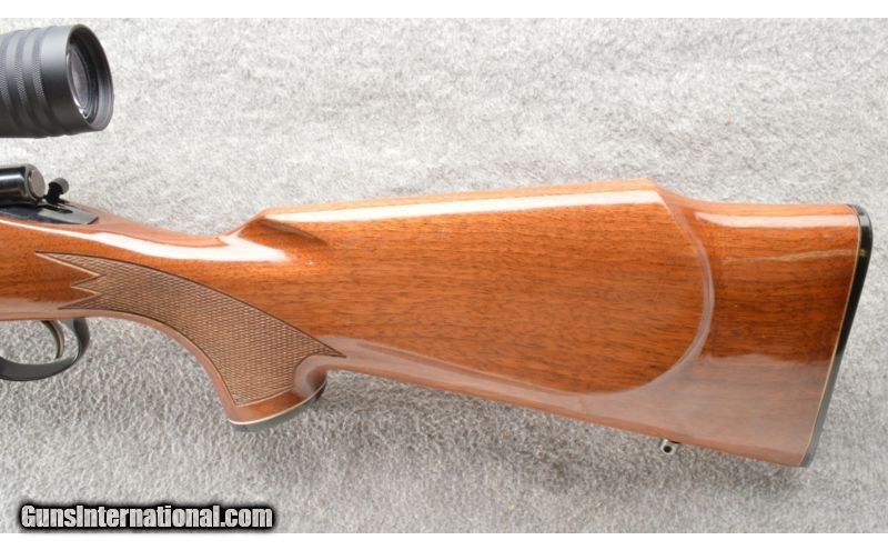 Description: This is a very nice Remington 700 BDL rifle in .30-06 Sprg. The blue is very good with some spotting and a touch on muzzle wear. The nice walnut stock has very small dings and dents and nice crisp checkering. The rifle is topped with a newer Redfield 3-9 X 40 rifle scope. The rear sight has been removed but comes with the rifle. SOLD Caliber Info: .30-06 Springfield. Chambers: Bolt action repeater. Metal Condition: Very good. Wood Condition: Very good. Bore Condition: Bright and shiny. Barrels: 22 inch blue. Triggers: Single trigger, (not affected by recall). Stock: Very nice walnut with a checkered pistol grip, black grip cap and forarm tip and Monty Carlo cheek and comb. Stock Dimensions: 13 1/4 inch LOP. Fore End: Matching checkered walnut with a black tip. Butt Pad: Black Remington butt plate. Weight: 8 Lbs 5 Oz as pictured. Sights: Redfield 3-9X40 rifle scope and factory sights. Extras: Comes with the factory rear sight, Scope, Scope base and rings. Item Location: Owatonna, MN |