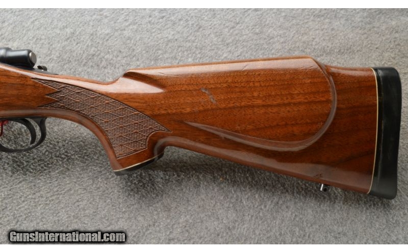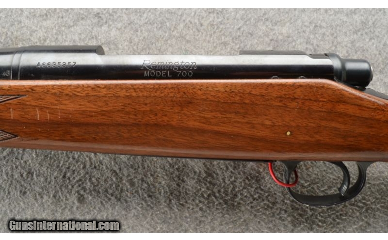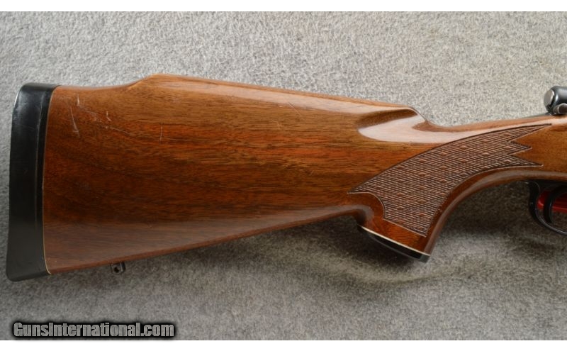 Description: This Remington 700 BDL should be a great shooter. The barrel has been cut down to 22 inches and recrowned. The walnut stock has field dings and dents but is sound and solid. This should be a great hunting rifle. SOLD Caliber Info: 7 MM Rem Mag Chambers: Bolt action repeater. Metal Condition: Good with minor marks. Wood Condition: Good with small dings and dents. Bore Condition: Bright and shiny. Barrels: 22 inch round blue. Triggers: Single, not subject to recall. Stock: Mid grade walnut with a checkered pistol grip, Monte Carlo and a black grip cap. Stock Dimensions: 13 3/8 inch LOP. Fore End: Matching checkered walnut with a black tip. Butt Pad: Remington black rubber butt pad. Weight: 7 Lbs 11 Oz. Sights: Sight removed but the rifle is drilled and tapped for your scope bases. Item Location: Owatonna, MN |