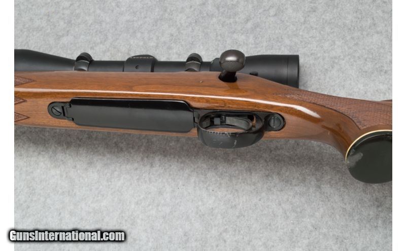 Description: Used. SOLD Caliber Info: .30-06 SPRG Metal Condition: Very good Wood Condition: Very good; a few handling marks; grip cap is chipped Bore Condition: Clean and sharp Barrels: 22 Triggers: Wide grooved target style Stock: Checkered pistol grip walnut; Monte Carlo comb and cheekpiece Stock Dimensions: LOP - 13 1/2 Fore End: Checkered walnut; black end and grip caps Butt Pad: Black Remington butt plate Weight: 8 lbs. 5 ozs. (with scope) Sights: No rear sight; ramp front with hood; Leupold scope Extras: Leupold Rifleman 4-12 x 40mm scope with mounts. Item Location: Sun Prairie, WI |