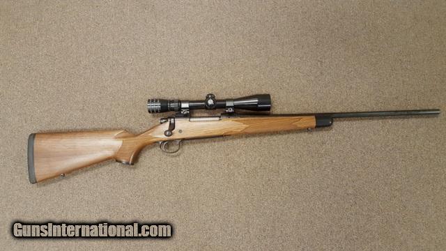 Description: Remington 700BDL Mountain Rifle 30-06 22 in. tapered barrel without sights, checkered satin finish American walnut stock with cheekpiece and ebony forend, Redfield 5 star 3x9 weaver rings and bases. Trigger has been updated at a Remington Repair center. LOP 13 1/2 factory recoil pad. S&H $35.00 C/C add 3% SOLD Manufacturer: Remington Caliber Info: 30-06 |